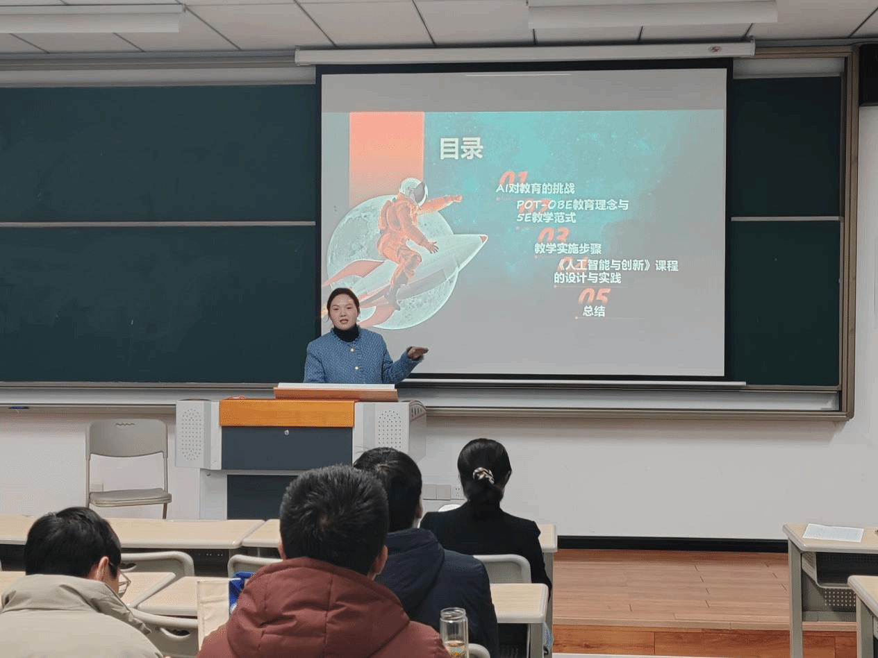 2025年2月26日下午4点,綦江校区通识教学部于智者楼102教室开展教师外出学习交流分享会。冉巍老师对参加南开大学举办的AI通识必修课“人工智能与创新”课程研讨会进行分享,部门全体教师参加。