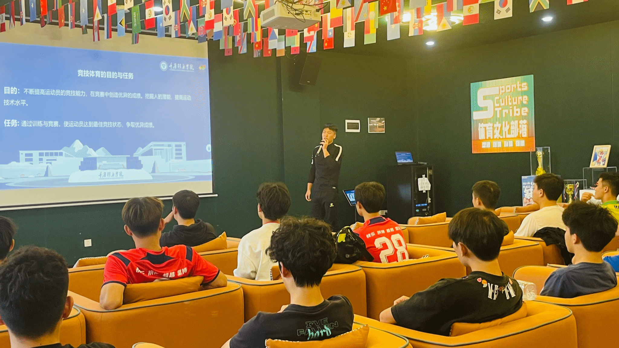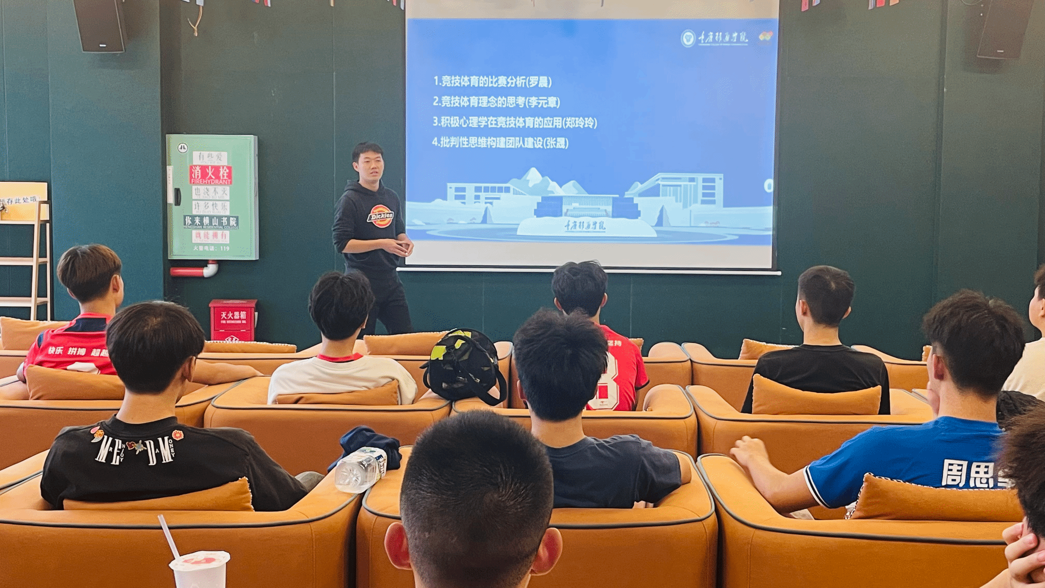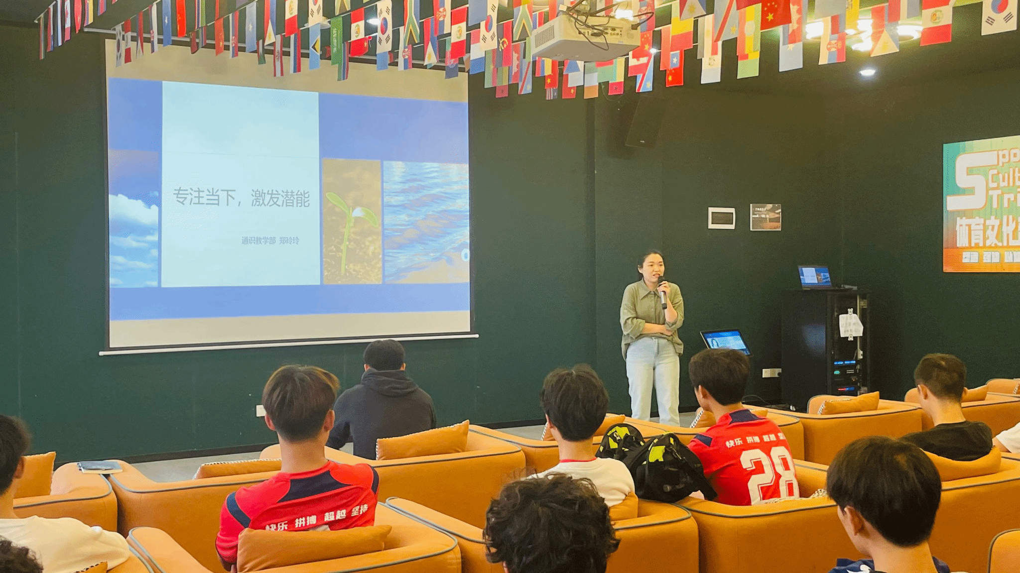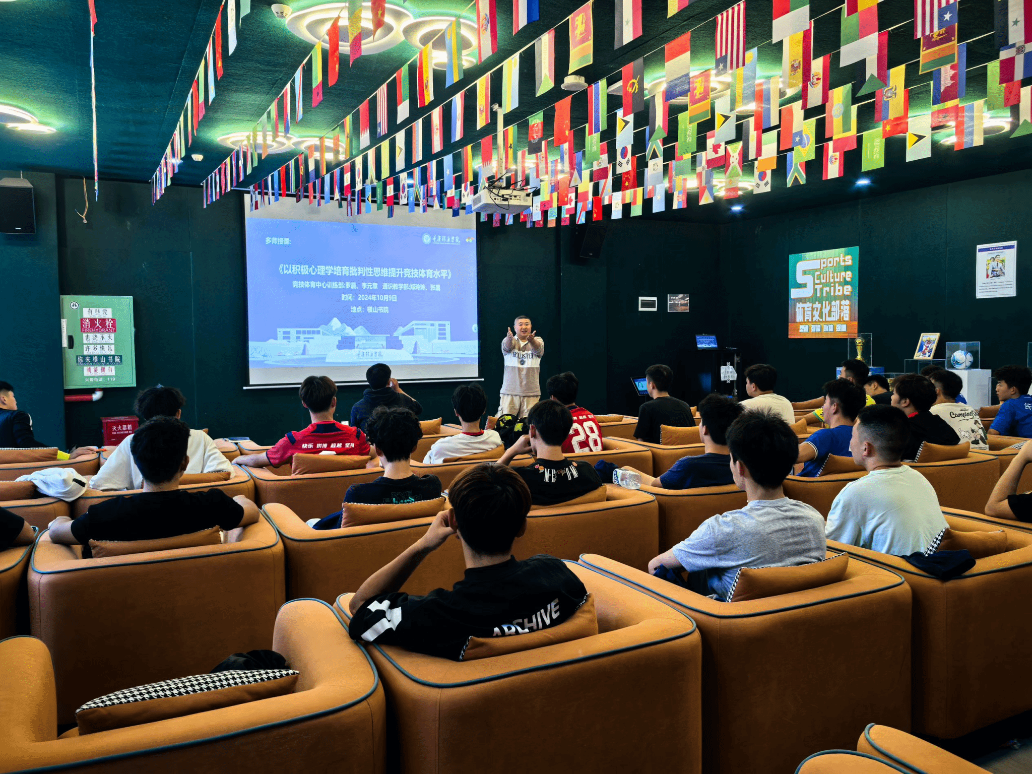 为丰富《幸福课》的第二课堂形式,实现跨学科融合,帮助我校足球队队员建立批判性的思维方式,提升学生竞技体育水平。10月9日竞技体育中心训练部教练罗晨、李元章及通识教学部教师郑玲玲、张晟四位老师在横山书院的流光多功能影音室共同为我校足球校队队员以“积极心态与批判性思维融合提升竞技体育水平”为题开展了一场精彩纷呈的多师授课。