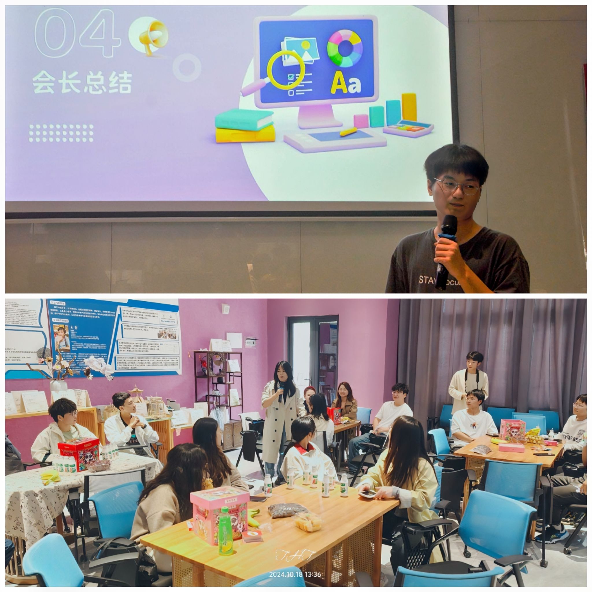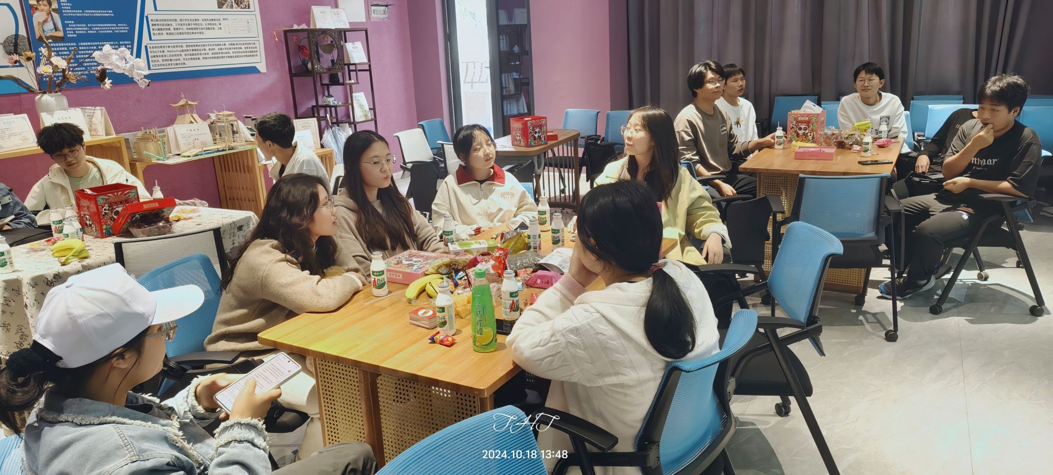 随着游戏环节的结束,会长宣布进入自由交流时间。成员们三三两两地聚在一起,分享着彼此的背景和兴趣爱好。一些人围成一圈,讨论着共同关心的话题,而另一些人则在角落里交换着联系方式,约定未来的聚会。笑声和交谈声此起彼伏,整个空间充满了活力和热情。