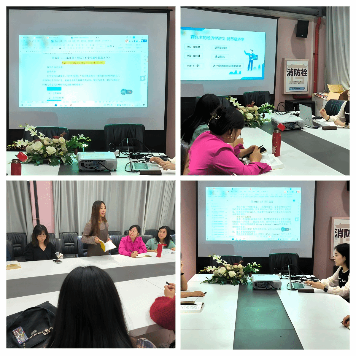 众师汇聚,各展风华,智识如繁星点点,交相辉映。读书会中,各位教师的观点如泉涌般涌现,既有对货币本质的深刻洞察,也有对通货膨胀复杂成因的独到剖析,更有对经济周期问题应对策略的睿智思考。每一份独到的见解,皆是教学艺术之珍宝;每一份独到的优势,共织成优质课堂之锦缎。此次读书会不仅加深了教师们对于“货币中的经济学”的理解,为各位老师梳理出较为清晰的授课思路,更为《生活中的经济学》教学团队打造优质课堂提供更多新颖方法和典型案例。