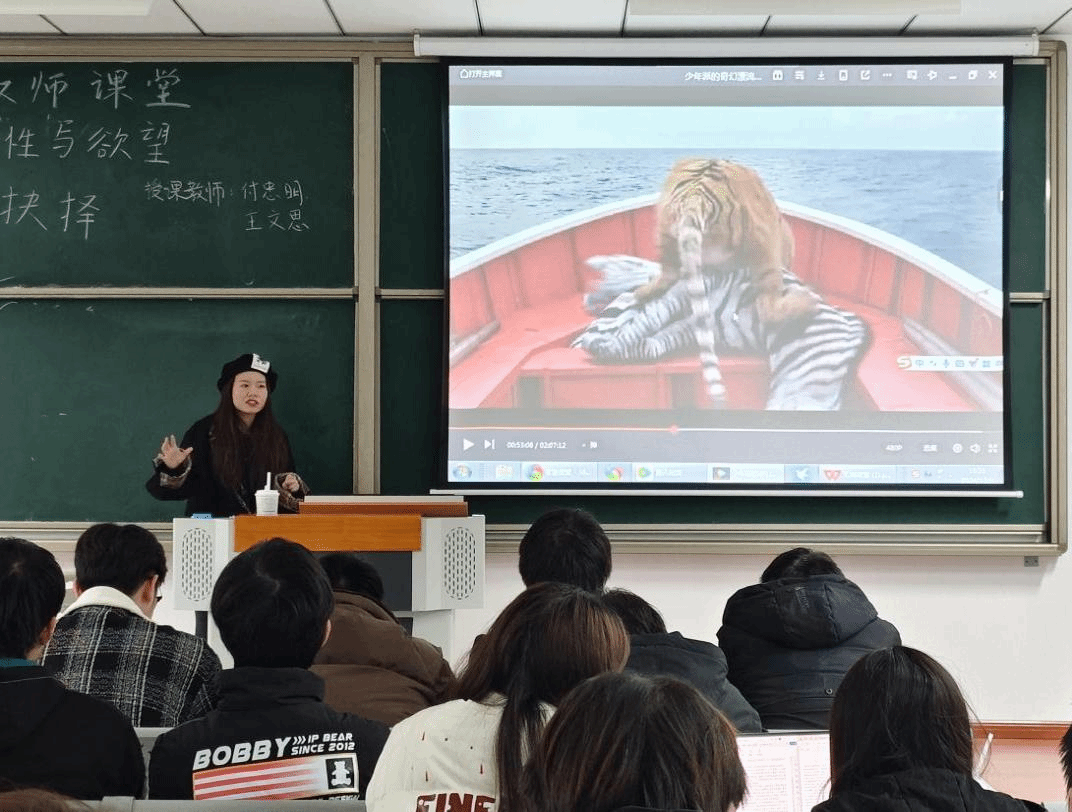 2024年12月3日,通识教学部《世界三大文明》课程教师付忠明邀请电影评论中心王文思老师,在勤者楼308教室以电影《少年派的奇幻漂流》为例,开展双师课堂,引领学子们踏上一场跨越学科、探索文化奥秘的奇幻之旅。