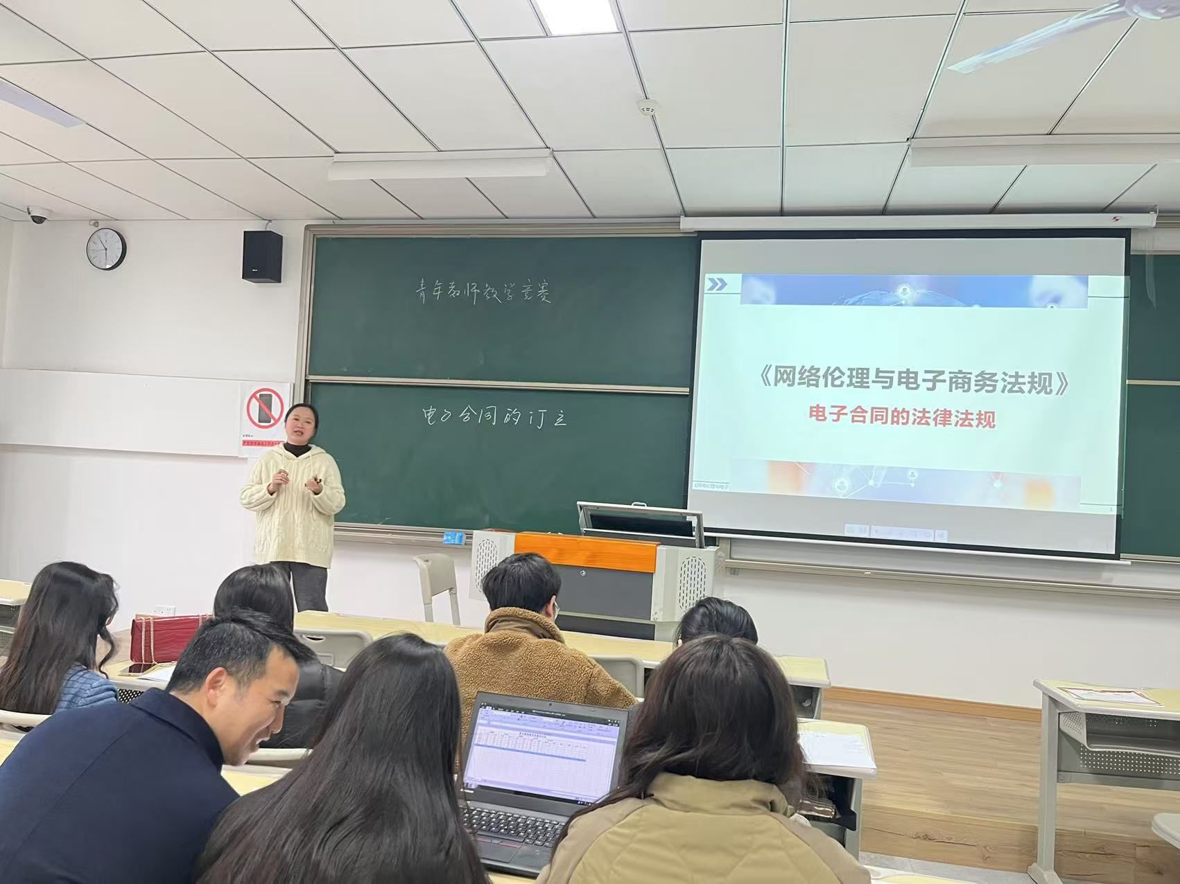杨佩璇老师通过案例分析,剖析消费者决策心理,融入互动游戏与数据可视化工具,课堂生动有趣。周媛欣老师的《新媒体时代的品牌与营销管理》以“国潮品牌出圈”为切入点,结合短视频营销实战,探讨品牌年轻化策略,展现数字化营销的创新思维。吴世侠老师在《数字经济时代财务管理与应用》中聚焦“复利计息法”,以校园贷实际案例解析公式应用,强化学生财经素养。唐秀英老师在《网络伦理与电子商务法规》的教学中,结合网络购物实例,梳理电商法律风险,融入模拟法庭环节,提升学生实务能力。