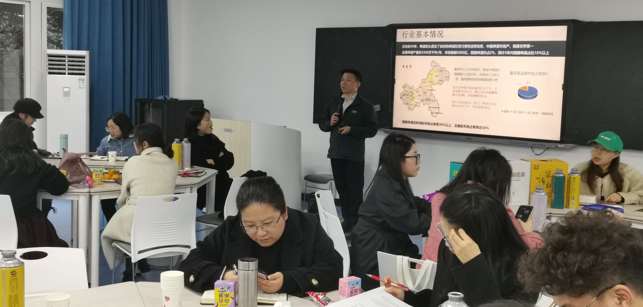 为促进校企合作,拓展师生行业知识,培养数字经济时代高情商管理人才,新商科教学部于11月15日下午2点在第五教学楼5205智慧教室成功邀请了重庆安特布鲁精酿啤酒有限公司创始人罗飞先生进行题为《快速消费品行业发展趋势》的专题报告。本次活动由新商科教学部副主任李义红老师主以及20位老师和20多名同学参加活动。