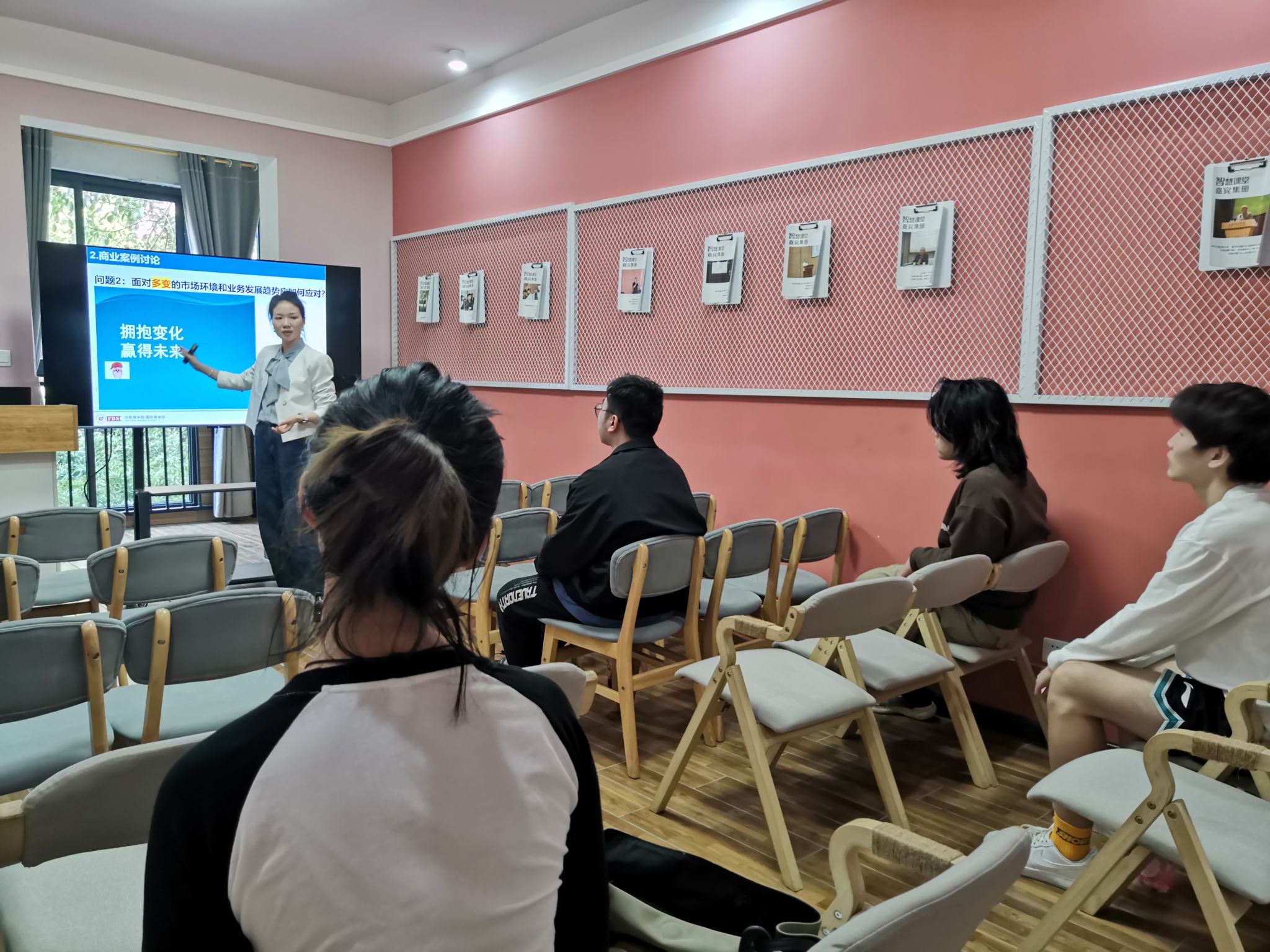 为进一步贯彻落实学校“四位一体双院制”育人模式,培养学生的商科思维和分析能力,不断深化商科教育与完满教育的联动融合,12月21日下午16:00,信息产业商业案例研究中心师生研讨会第22期在别都书院智慧教室成功举行。本次案例研讨活动由淬炼商学院基础教研室周琴宇老师主讲,案例是由周老师撰写的真实商业案例,淬炼商学院谭红英老师同别都书院组织了校内10名不同专业的学生参与了此次研讨活动。