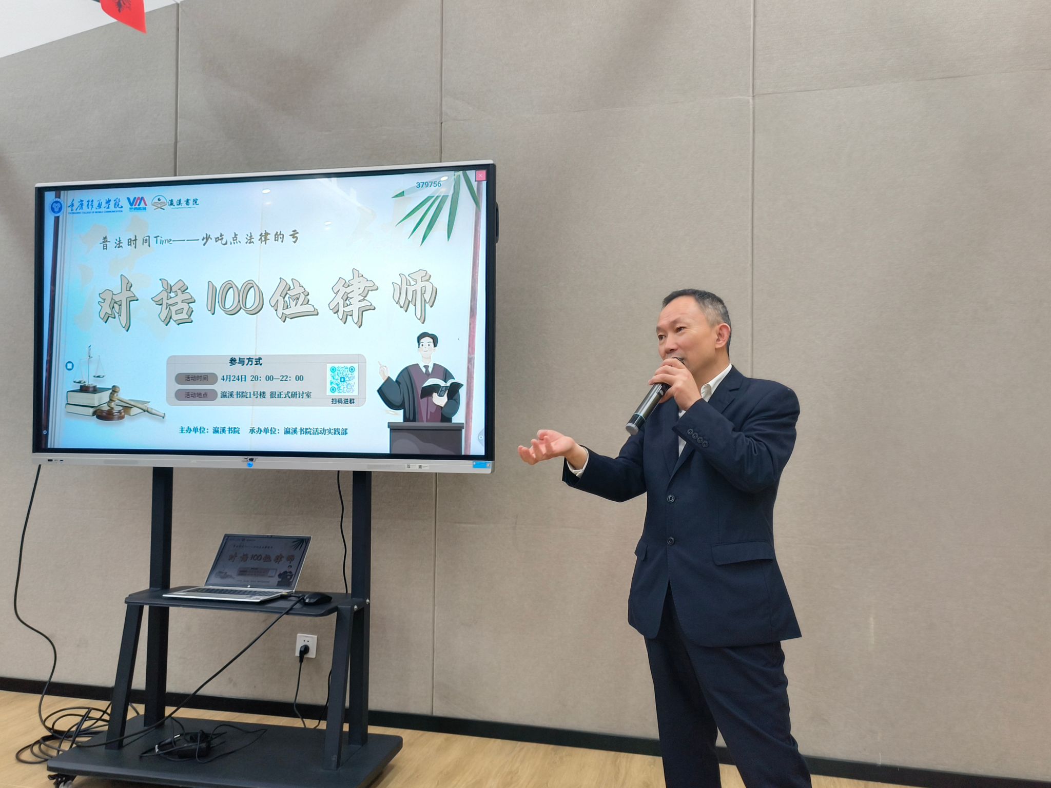 为了让课堂更加生动有趣,培养大学生的法律意识和法治精神,学会用法律思维分析和解决问题,从而在日常生活中更加自觉地遵守法律,维护法治秩序。为此,綦江新商科教学部和瀛溪书院邀请到了重庆市綦江区通惠法律服务所主任,司法部2019年度“新时代司法为民好榜样”,法律服务经历31年的罗劲松主任,于2024年4月24日晚上20:00点,在瀛溪书院·很正式研讨室进行了一场主题为“对话100位律师”课堂教学改革法律主题讲座。