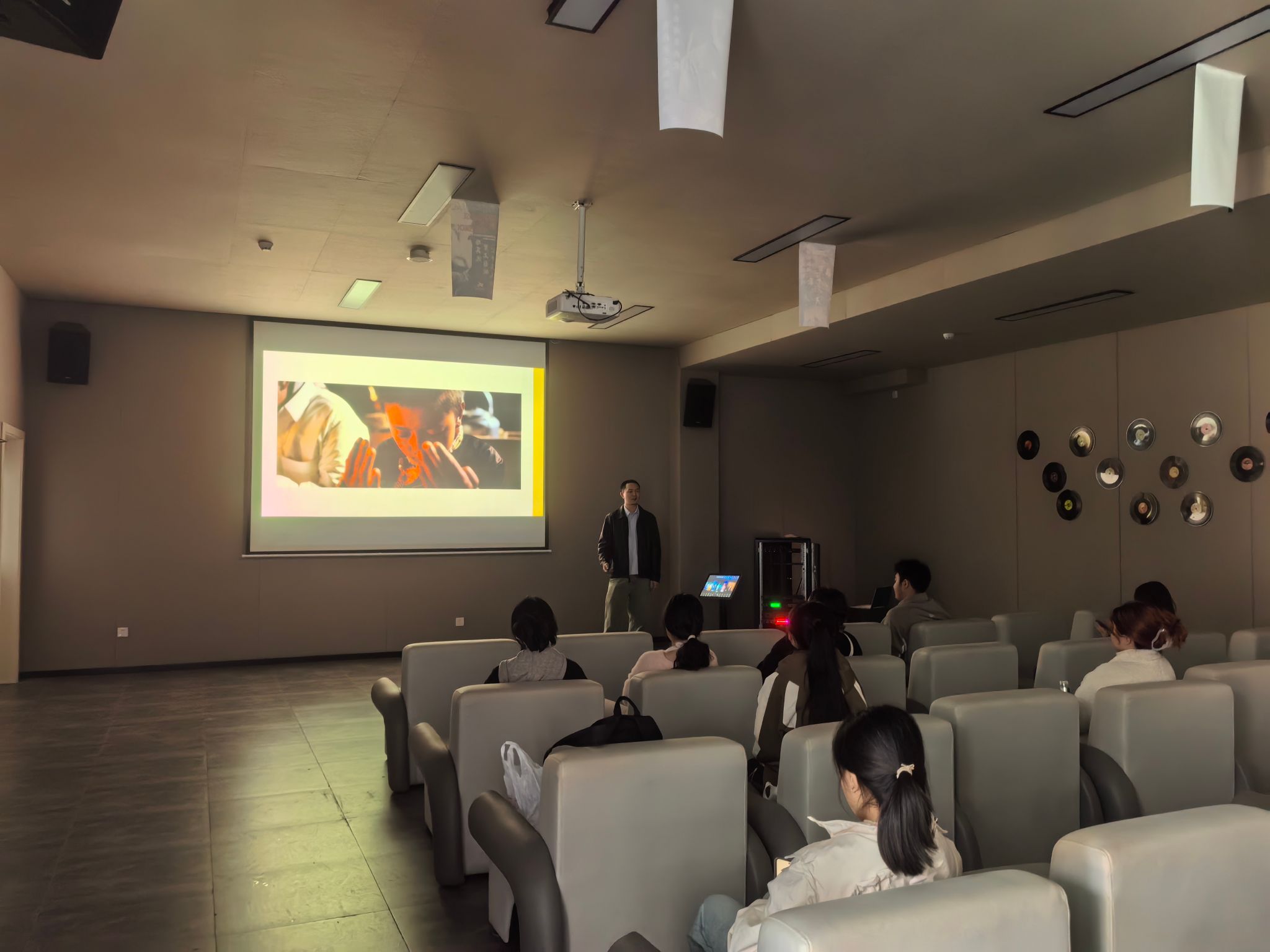 2024年11月8日,在充满艺术氛围的瀛溪书院潜台词影音播放室,来自戏剧影视学院兼电影商务产业学院的项目导师程略晋老师,为实训班的同学们带来了一场别开生面的《导演基础》课程。此次课程不仅让同学们对电影导演的工作有了更为深入的了解,更为后续的影视创作实践打下了坚实的基础。
