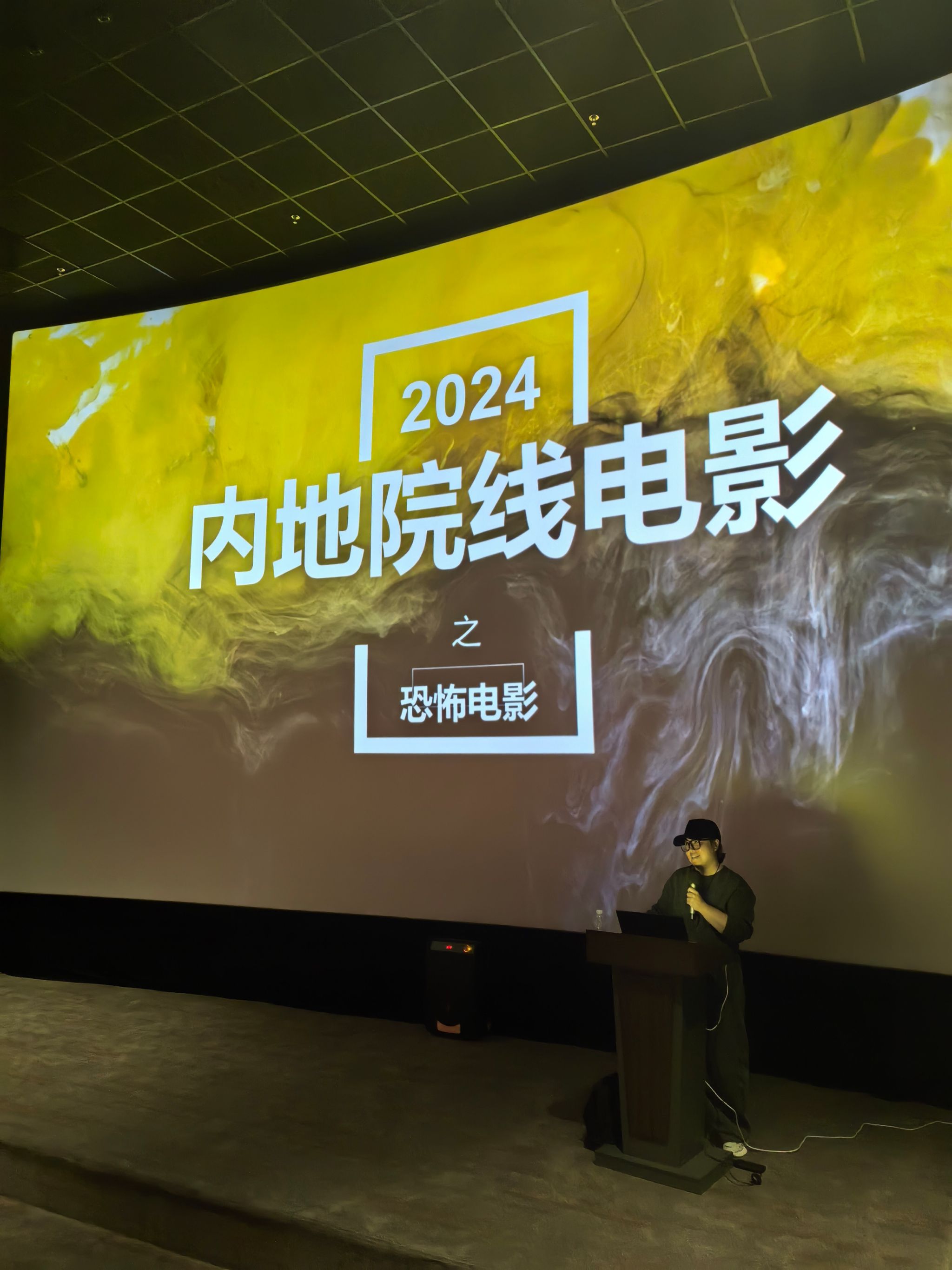 11月13日下午16:00,福建恒业影业有限公司的郭跃老师在万画影城四号厅为实训版同学们带来了一场别开生面的企业公开课,主题为《内地院线电影之恐怖电影》。此次公开课不仅深入剖析了恐怖电影在内地院线的发展现状与趋势,还分享了恒业影业在恐怖电影制作与发行方面的宝贵经验。