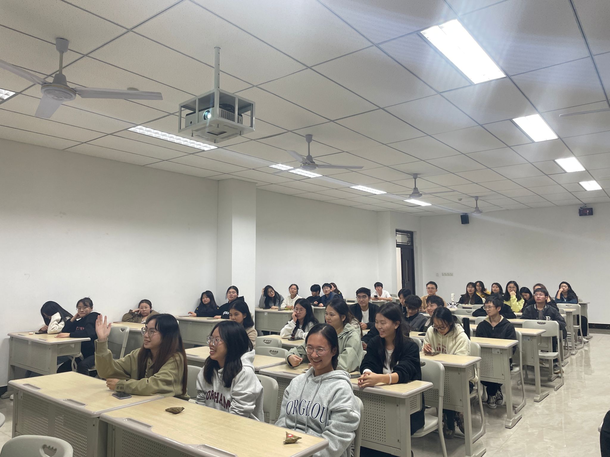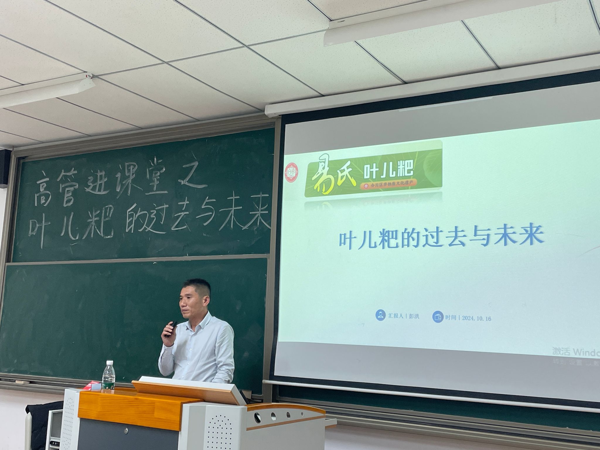 活动接近尾声,为鼓励同学们积极参与,彭总特别设置了有奖问答环节,同学们踊跃提问,彭总耐心解答了关于叶儿粑制作工艺、市场推广以及如何保持传统与创新平衡等问题。整个讲座在热烈的掌声中圆满结束。