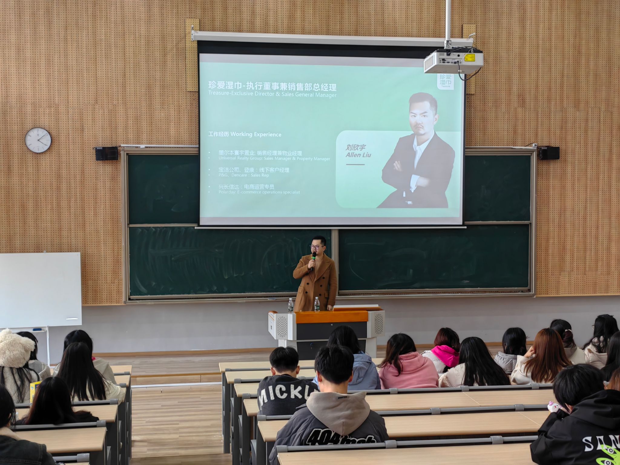 为持续推动第三届“珍爱湿巾杯”品牌营销课程作业大赛顺利开展,《网络广告与新媒体传播》课程组于11月27日16:00-17:30在横山书院阶梯教室开展了“高管进课堂”讲座活动,此次讲座特邀珍爱湿巾品牌执行董事兼销售部总经理刘欣宇先生到校,为广大学子带来了一场关于广告营销的知识盛宴。此次讲座吸引了众多移通学子的关注,现场气氛热烈。