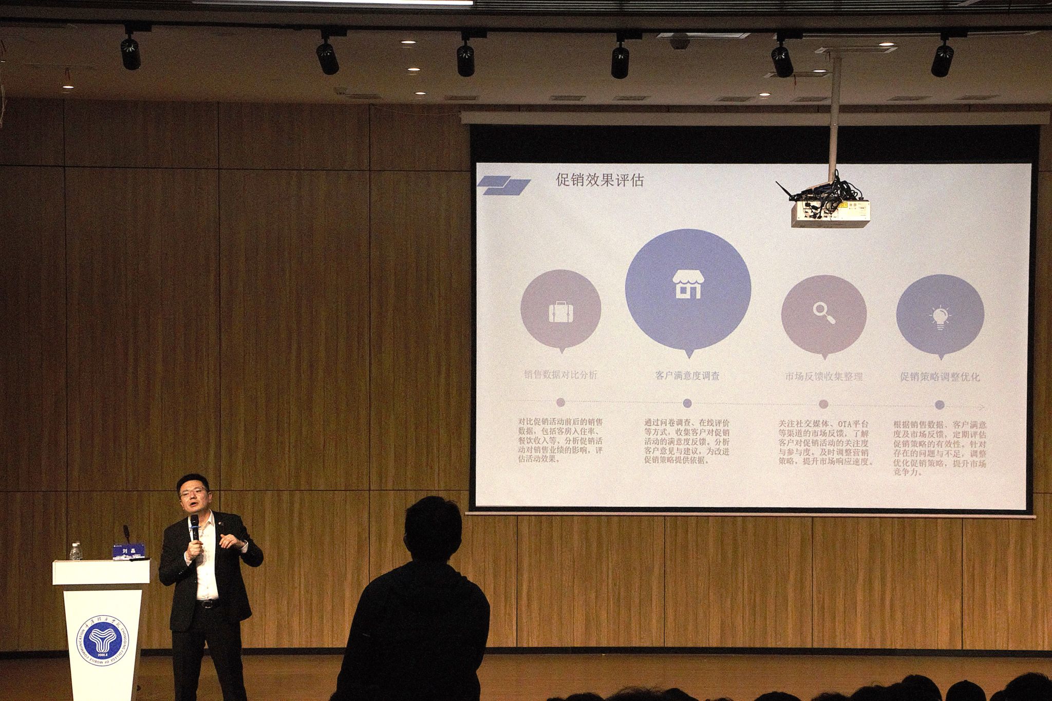 讲座伊始,刘晶总经理深入剖析了酒店市场营销的多个关键领域。从酒店市场分析入手,目前中国有将近9.08万家酒店,现阶段酒店的目标顾客主要集中在差旅工作者、休闲旅游客户、会议团队、家庭出游者等,并为同学们清晰地描绘了当前酒店行业的市场格局与发展趋势。