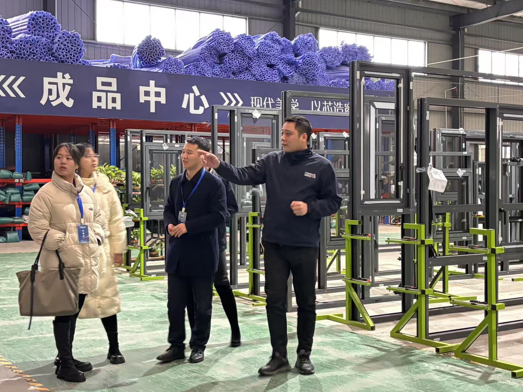 师生们受到了重庆美诺匠芯门窗有限公司销售总监韦令的热情接待。在韦总的带领下,师生团首先参观了公司的生产车间,亲眼见证了门窗产品的生产流程。车间内,先进的生产线和严谨的工作流程给师生们留下了深刻的印象,也对企业的现代化管理有了直观的认识。