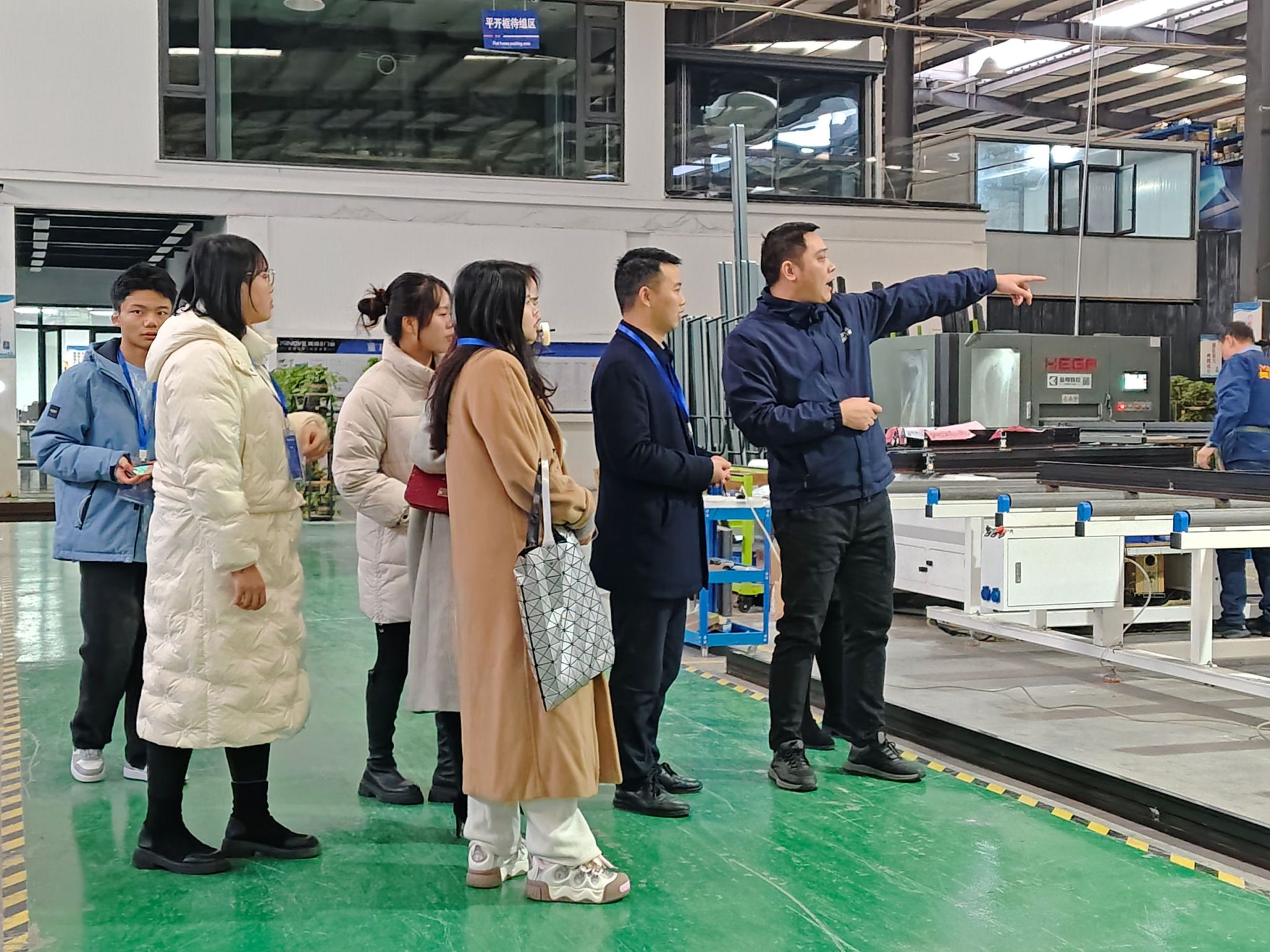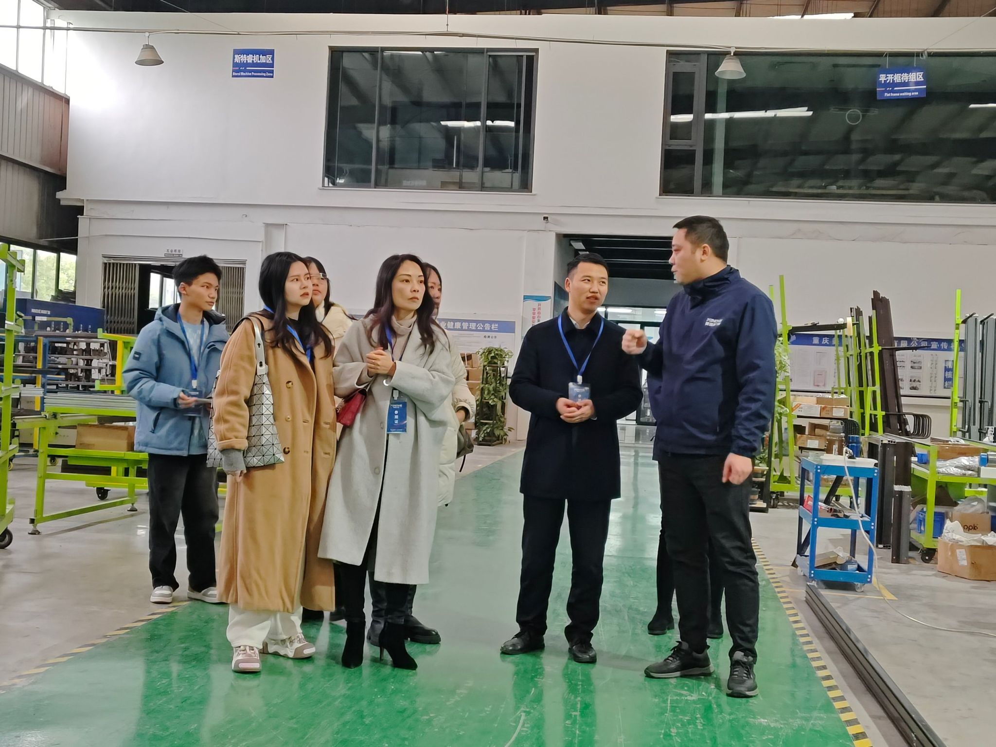 12月12日,在骨干教师郑伟老师带领下,綦江新商科教学部领导力提升课程多名教师以及智能科学与技术、区块链工程专业的3名学生共同前往重庆美诺匠芯门窗有限公司进行实地参观交流。旨在深化校企合作,让学生了解企业运营的实际情况,同时为企业的未来发展注入新思路。