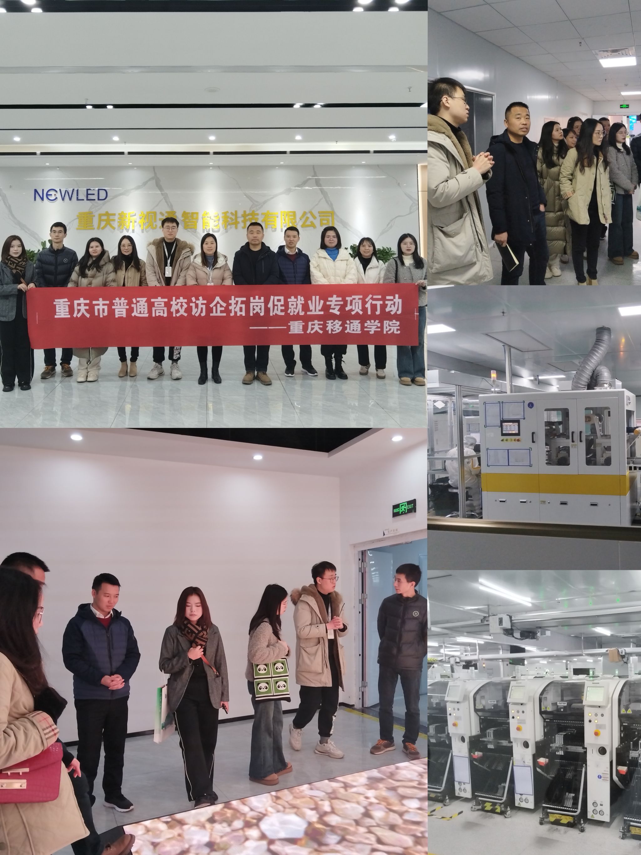 随后,代表团又前往重庆新视通智能科技有限公司,这是一家集研发、生产、销售为一体的LED生产企业。公司负责人为大家展示了公司在MiniLED、MicroLED等产品领域的研发实力和市场应用案例,师生们对公司的技术实力和市场前景表示出浓厚兴趣,并且了解到公司市场营销部目前有引进人才的需求。