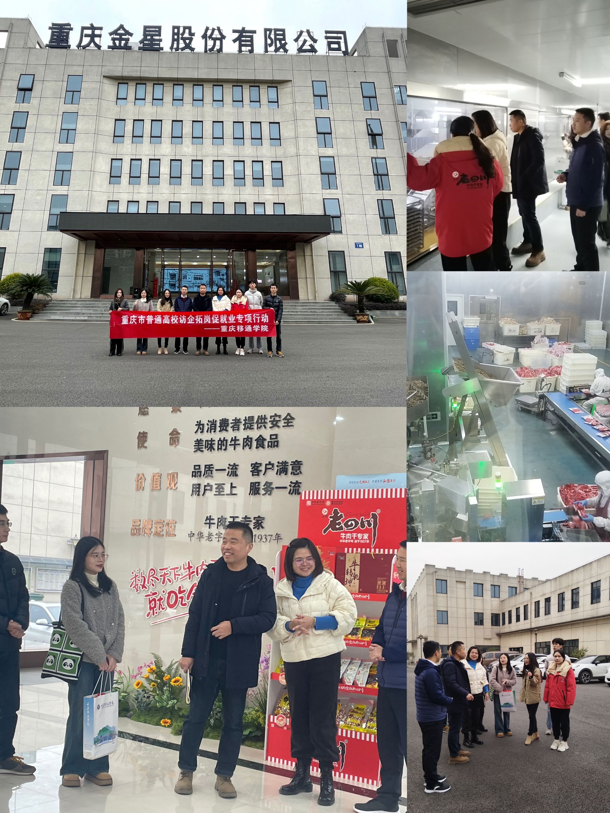 下午14:00,代表团从重庆移通学院统一乘车出发,首站抵达重庆金星股份有限公司。该公司作为历史悠久的牛肉干生产企业,以其“金角、老四川”系列牛肉干享誉全国,拥有“中华老字号”和“中国驰名商标”等多项荣誉。企业负责人详细介绍了公司的历史沿革、产品特色以及市场拓展情况,师生们对公司的传统文化和现代技术的结合给予了高度评价,并对后续师生走访交流表达了浓厚的兴趣和期待。