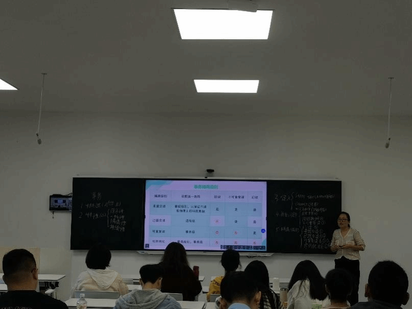 在示范课上,李静毅老师以其深厚的专业知识和独特的教学风格,生动诠释了“为什么学习数据库事务”。李静毅老师从事务概述、事物特性、事务定义、并发带来的问题和事务隔离级别五部分内容进行了示范讲授。期间李静毅老师还通过使用图例、动画演示、板书、联想教学法等手段,通过分析、归纳、总结学习数据库事务这一知识点。李静毅老师的授课方式深入浅出,既注重理论知识的传授,又注重实践技能的培养,使得整个教学过程既充实又富有启发性。