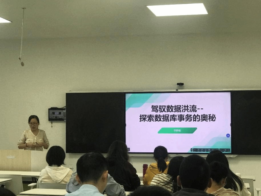 主讲人李静毅老师首先介绍了本次课程的知识目标:驾驭数据洪流—探索数据库事务的奥秘。通过分析学生当前的学习情况,明确了本次课程的授课目的及课堂设计思路。围绕“数据库事务”为主题,从学生兴趣出发去层层探索学习以达到教学目的。课程强调学生在学习专业知识的同时,培养提升对问题分析解决的能力,强调建立思维模型和知识框架。