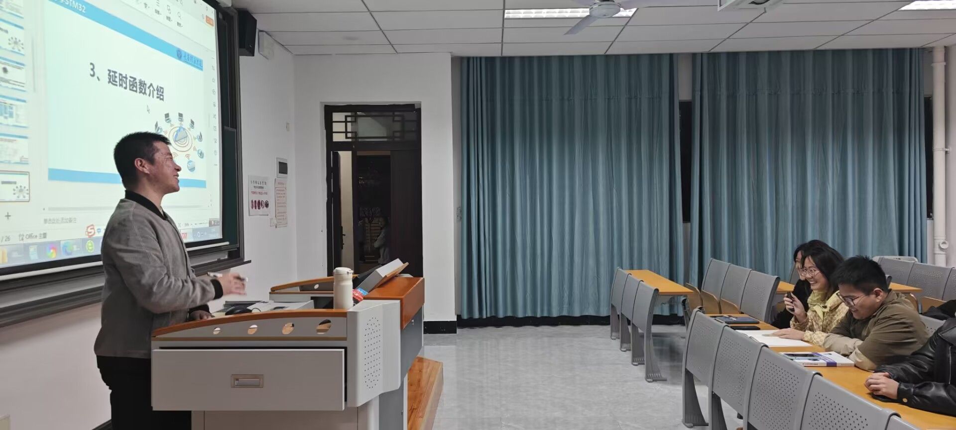 随后,智科教研室主任兼嵌入式课程负责人徐多礼老师为大家带来了一节精彩的示范课。徐老师采用“说课10分钟,讲课20分钟”的方式,首先对课程的设计思路、教学目标、教学重难点进行了简明扼要的阐述,随后针对嵌入式系统的基本概念、开发环境搭建、程序设计等核心内容进行了深入浅出的讲解。徐主任的示范课内容丰富、条理清晰,不仅注重理论知识的传授,还紧密结合实际案例,将抽象的理论知识转化为具体的应用实践,让学生们在轻松愉快的氛围中掌握了所学知识。