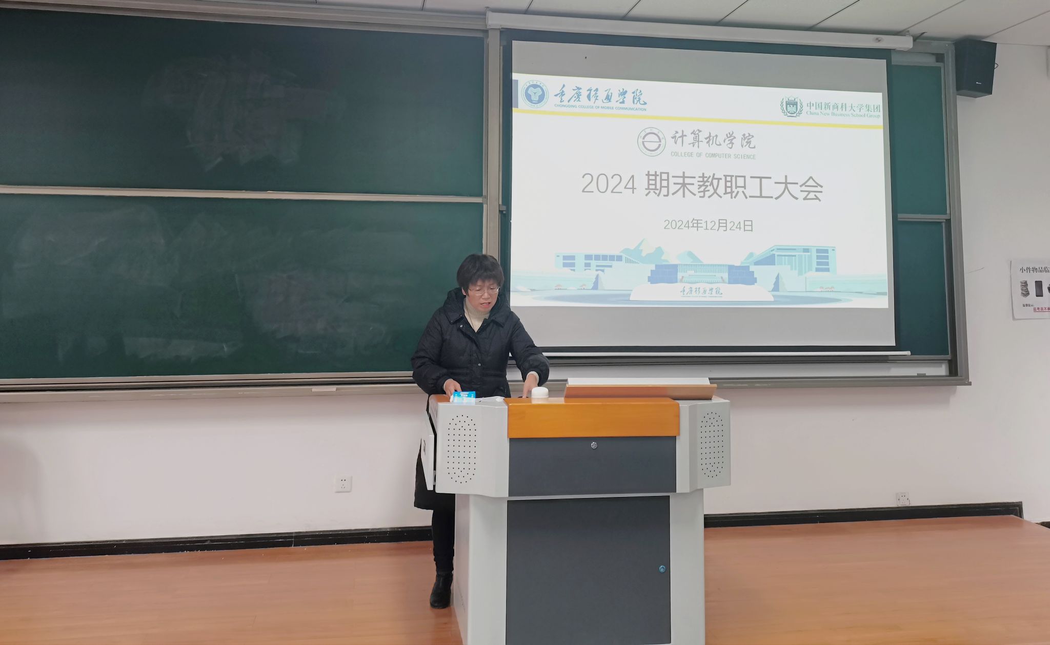 2024 年 12 月 24 日下午,计算机学院期末教职工大会在热烈而有序的氛围中拉开帷幕。此次会议由计算机学院院长向碧群教授主持,学院全体教师齐聚一堂,为学期末各项工作的稳步收官筑牢根基。