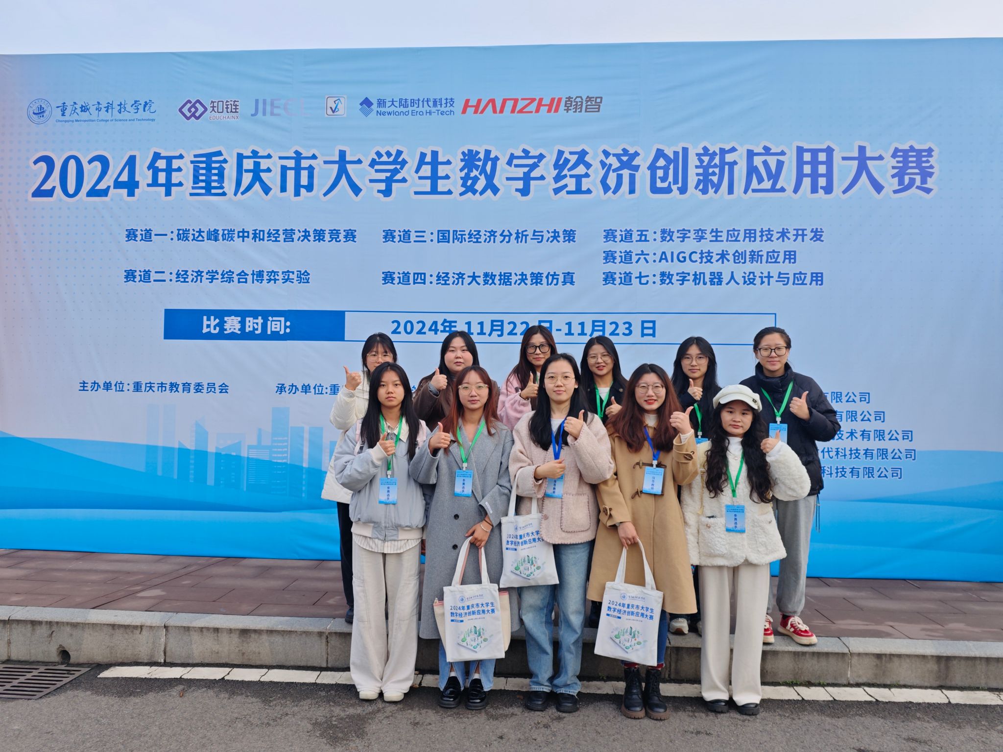 为紧随数字经济的蓬勃发展步伐,着力培养学生的决策思维能力、经济数据分析能力以及经济模型应用能力,并进一步推动虚拟仿真与教学实践的深度融合,2024年重庆市大学生数字经济创新应用大赛决赛于11月23日在重庆城市科技学院(永川校区)圆满落下帷幕。重庆移通学院精心选拔了19支优秀队伍参赛,这些队伍在校内经过层层筛选,实力出众。赵鈺琳、王瑜两位老师带队参赛,参赛队伍表现出色,共荣获二等奖4项、三等奖4项,充分展现了移通学子的能力和风采。