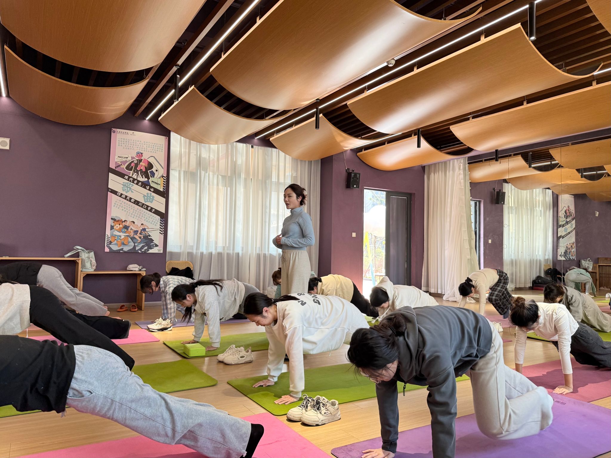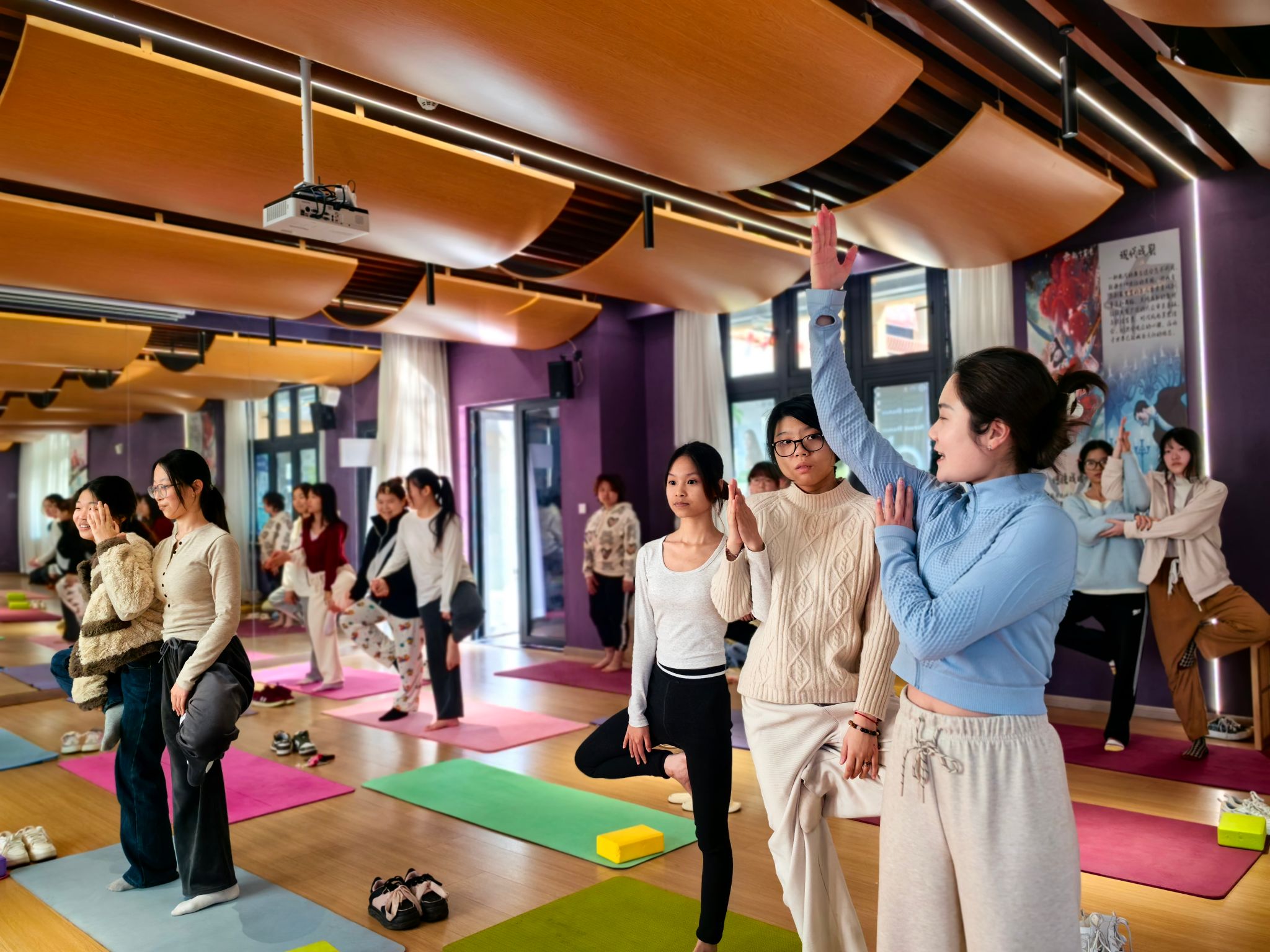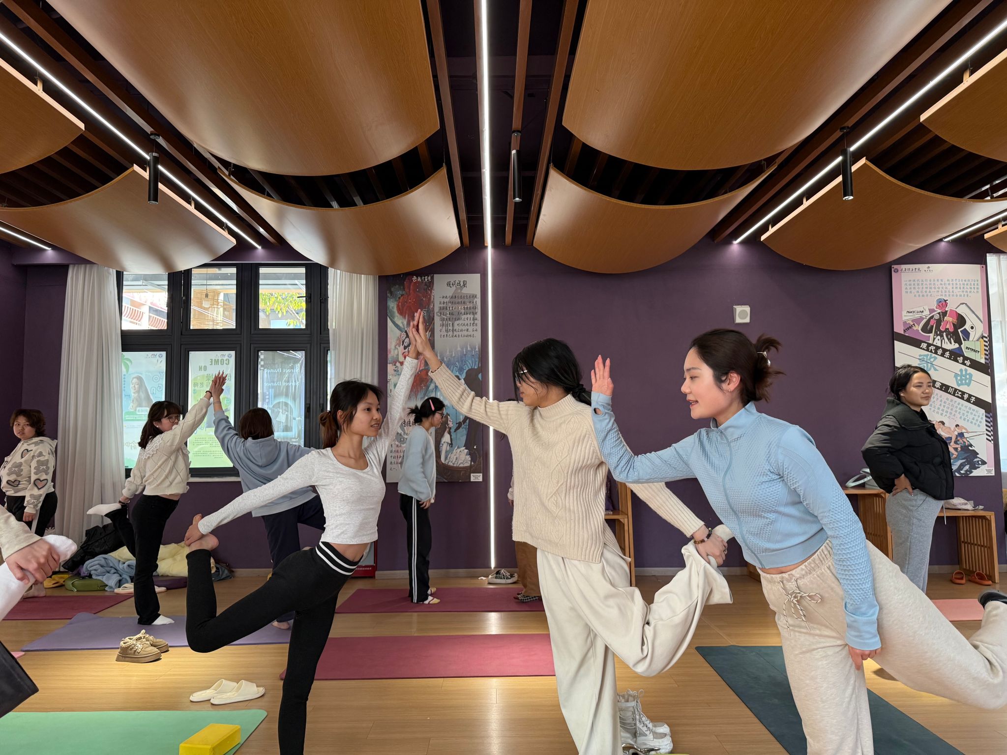 刘润逸老师主讲的瑜伽专项课程——《平衡体式的进阶练习》突破传统体育教学模式,构建四大特色体系:其一,创新体育课教学方法,依托多媒体教学教学场景,通过音乐、视频等给予学生更直观的信息和互动,在技术学习的同时附加以瑜伽文化内涵、运动人体科学知识的理论性普及,让学生们拥有沉浸式的学习氛围和对项目的全面理解,从而真正培养起对课程的学习热情;其二,在教学中融入课程思政,通过"瑜伽与中国传统养生项目之比较”的主题讨论,引导学生对比瑜伽的"三脉七轮"与太极"经络学说"的理论共性,分析瑜伽体式套路同五禽戏、八段锦的相似之处,在帮助学生认知瑜伽项目的同时进一步加深对于中国传统项目的了解,培养文化自信;其三,创新"瑜伽+闯关"游戏化教学,设计平衡力测试、瑜伽体式接力赛等一系列融合体能与智慧的竞技游戏,充分为课程主体的开展“热好身”;其四,突出课堂中的团队协作,设置双人平衡体式辅助练习及小组体式造型创编环节,强调团结互助的协作精神,并在体育中进一步发展美育。