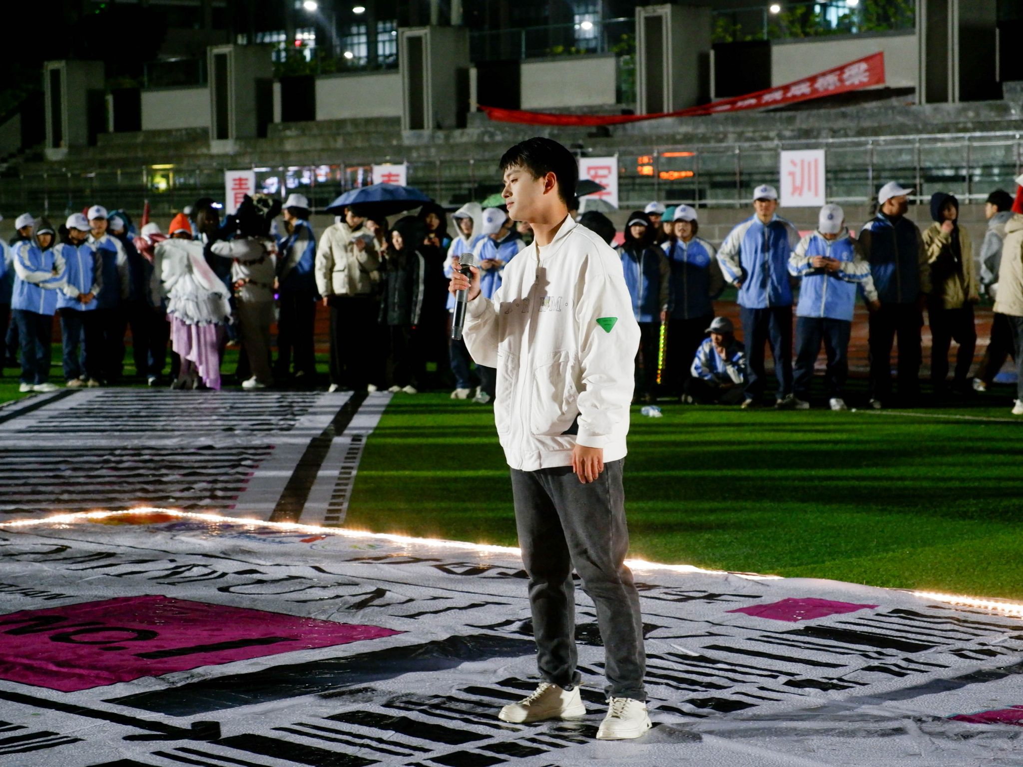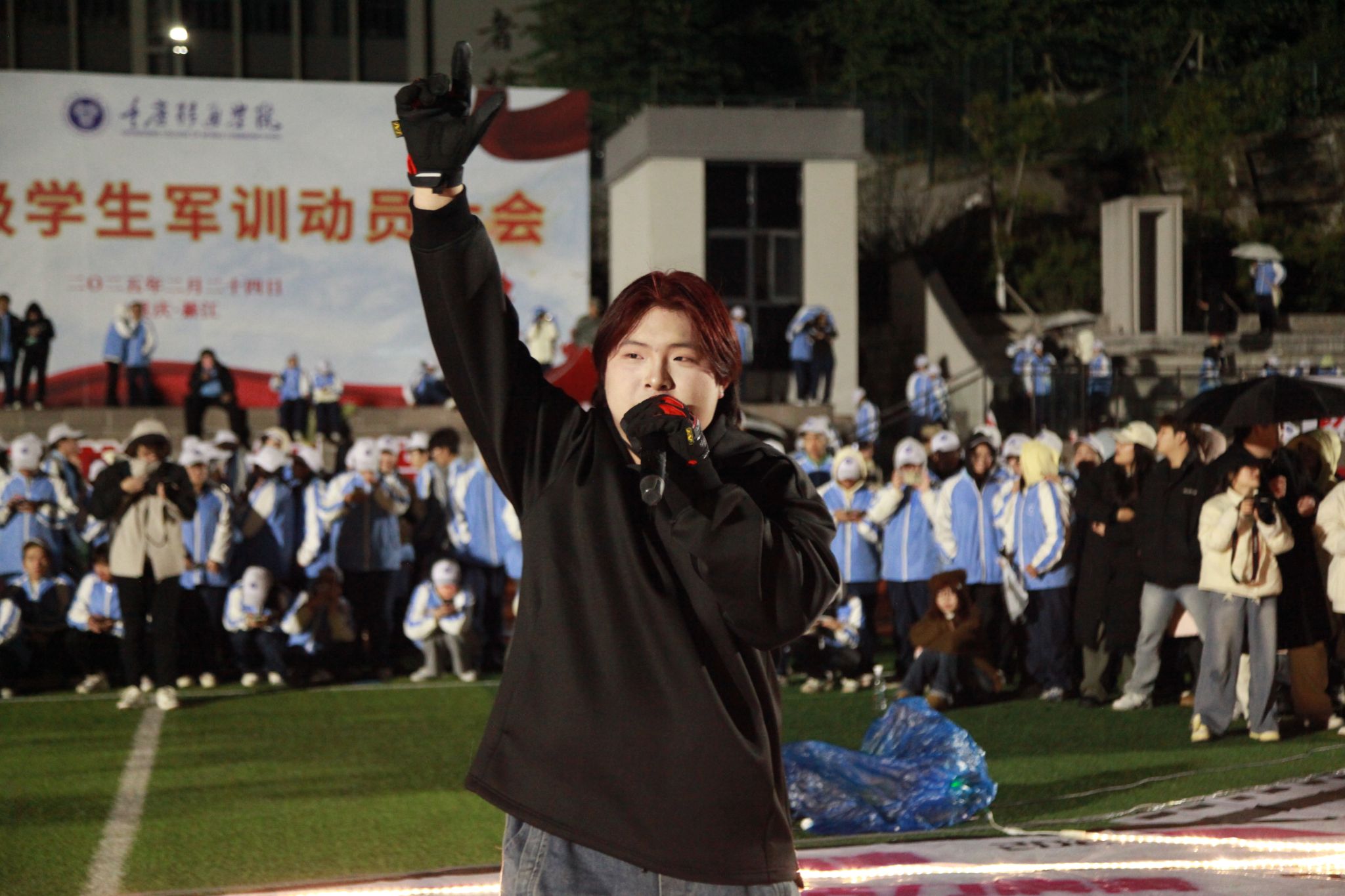 有迹可循的新生力量定格每一帧发光的青春,专属2024级学生的仪式感如约而至。2025年3月5日晚,“青春共燃公式——社团进军营特别活动”在校足球场燃情上演,本次活动与5000名大一新生共同演绎了“社团+军营=活力满满”的热血方程式,以音乐、舞蹈与热爱为军训注入“潮生”力量。