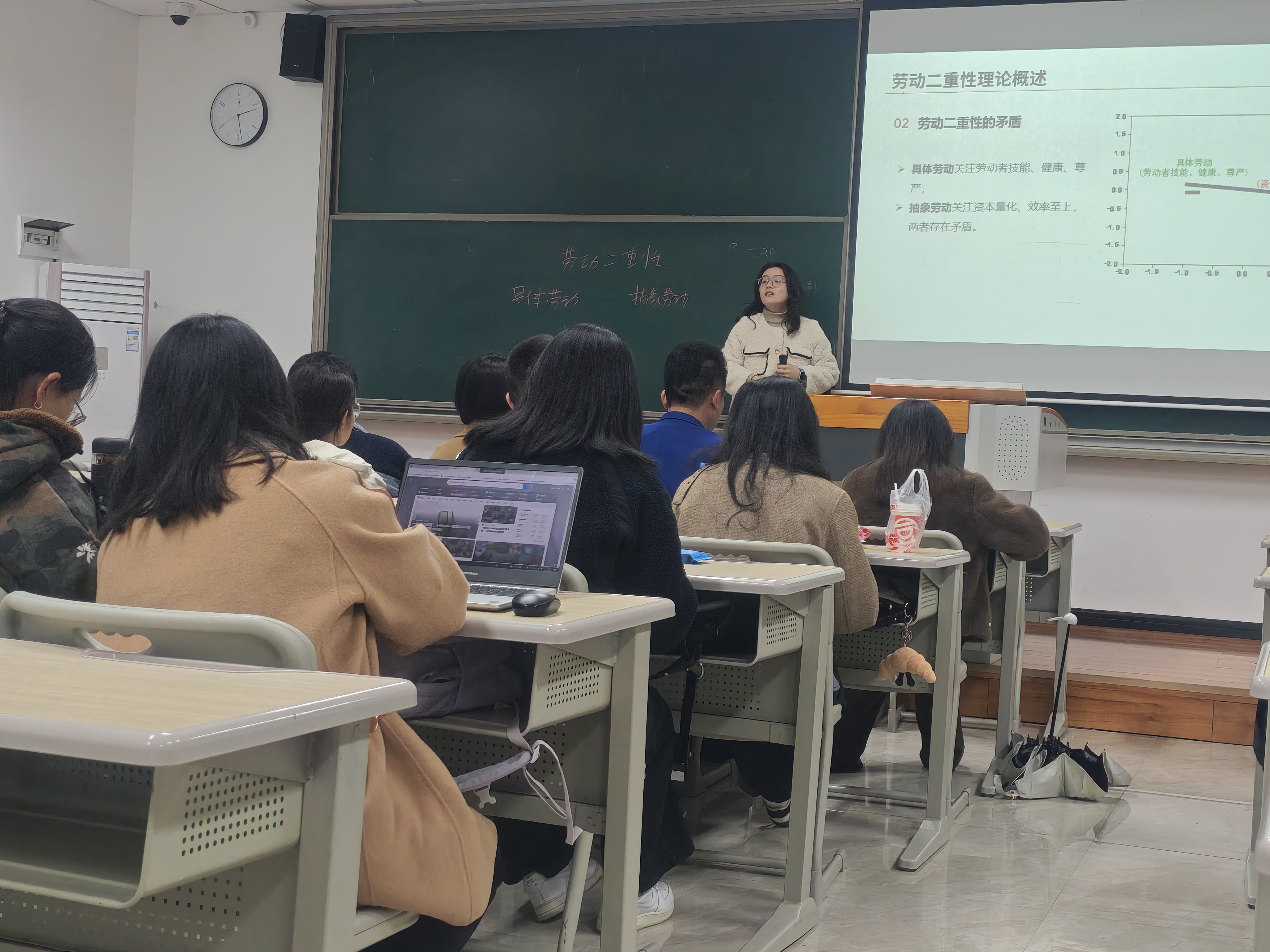 数字经济教研室的冉叶虹老师聚焦“劳动二重性”这一专业概念,通过生动的案例和深入浅出的讲解,将劳动精神、工匠精神等思政元素融入教学,引导学生树立正确的劳动观念,深刻理解劳动在个人成长和社会发展中的重要作用,为学生的职业发展筑牢思想根基。