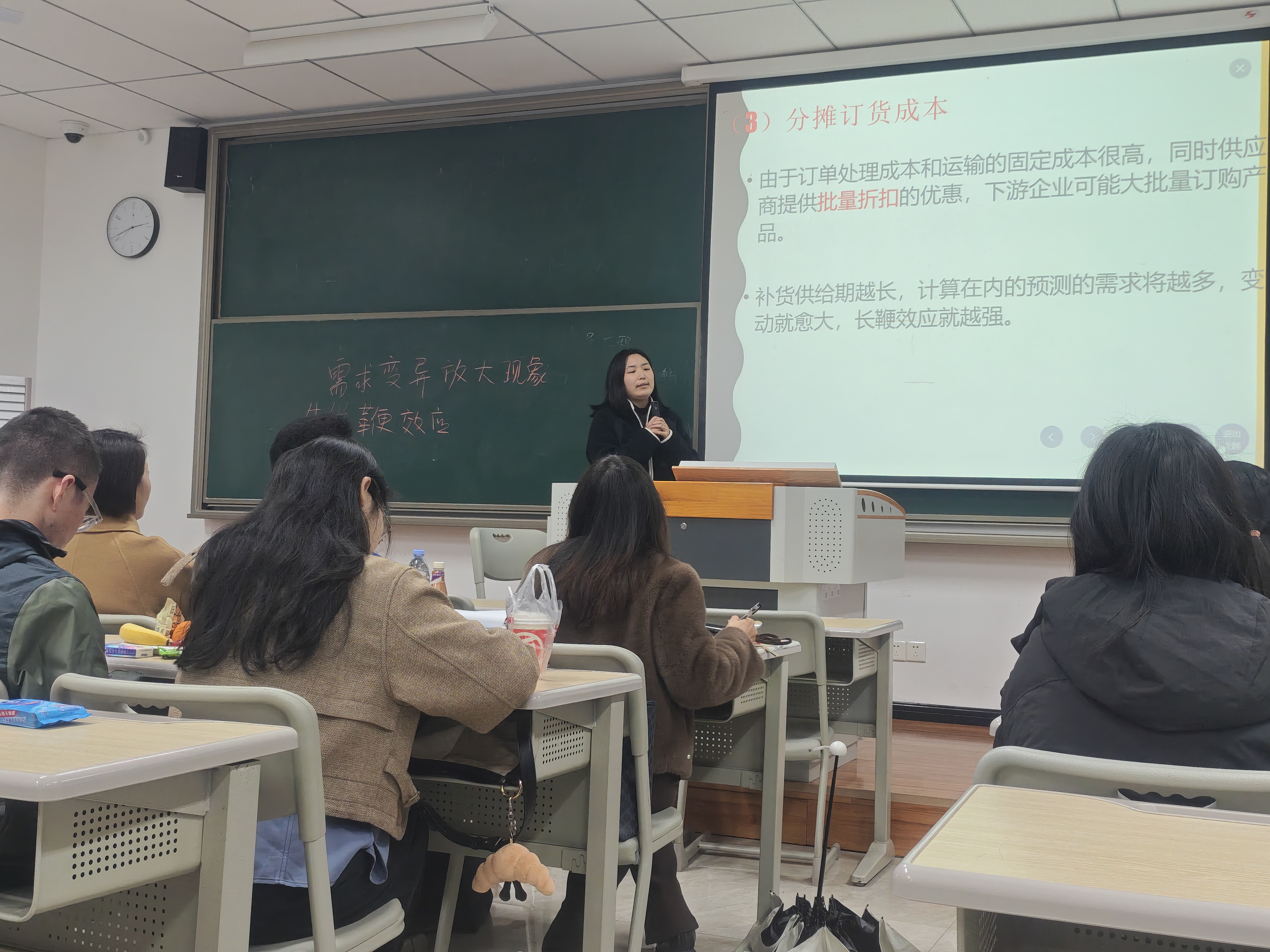 供应链管理教研室的吕志赛老师以“需求差异放大现象——牛鞭效应”为切入点,通过深入浅出的分析,将复杂的供应链原理直观呈现,不仅增强了学生的理解和记忆,还培养了学生的责任意识和团队合作精神,展现了课程思政在专业教学中的独特价值。