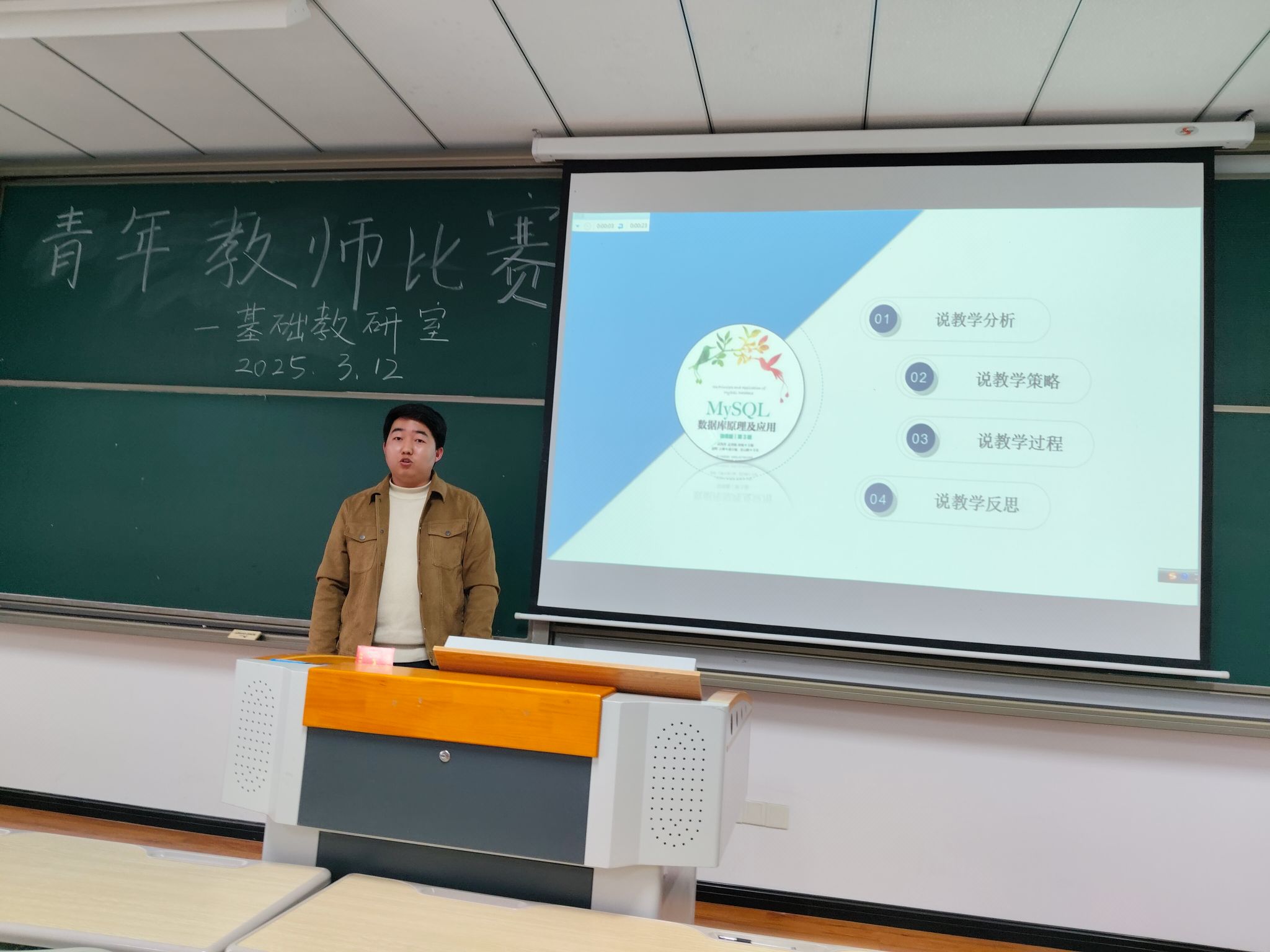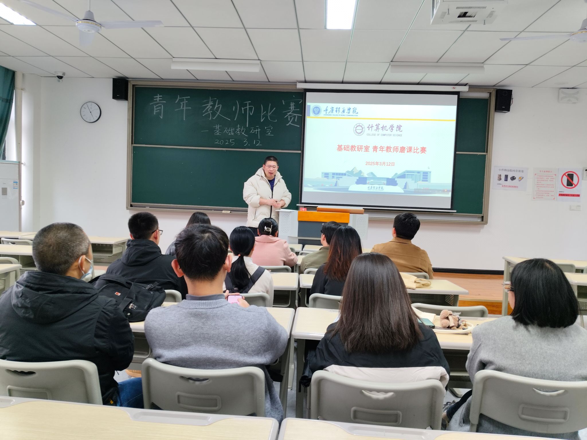 为深入贯彻落实新时代教育强师战略,夯实教学根基、锤炼师者匠心,2025年3月12日,计算机学院基础教研室以“全员、全程、全域”的革新姿态,在勇者楼202教室成功举办青年教师首轮磨课活动。此次活动集结校院两级督导、教研室全体教师及教学骨干,通过“三轮九环”精准打磨,奏响了一场刀刃向内的教学革命强音。