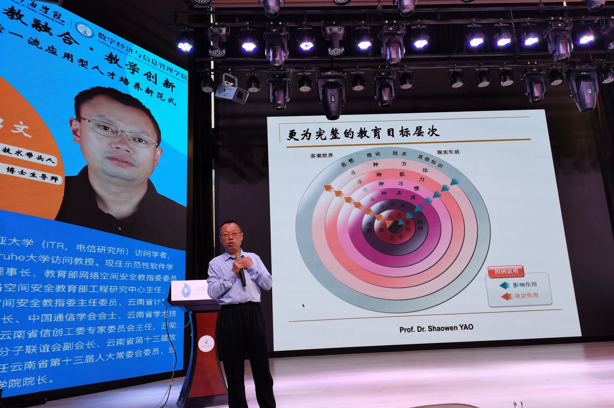 3月14日,数字经济与信息管理学院精心组织40名骨干教师齐聚海南三亚,参加以“智能化时代的创新与教育”和“创新型人才培养的资源整合与优化路径”为主题的教师能力提升讲座。本次讲座特邀云南省学术带头人、博士生导师姚绍文教授担任主讲嘉宾,姚绍文教授曾任云南省第十三届人大常委会委员,云南大学软件学院院长。姚教授结合大量实践案例,讲解了如何整合各方资源、优化人才培养路径,助力教师们突破传统教学思维束缚,提升教学日常管理水平,精进教学技法,推动专业与课程建设迈向新台阶,全方位适应新的教学模式,培养出更符合时代需求的创新型人才。