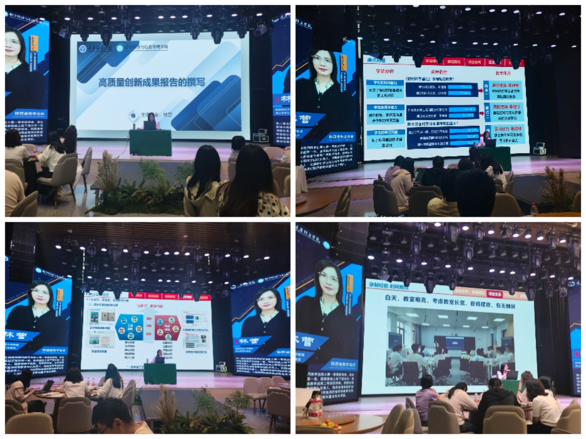 在讲到成果撰写环节,林营教授以自己在教学创新大赛中的获奖作品为蓝本,层层剖析,为教师们揭开了从教学实践到成果总结的神秘面纱。她强调,敏锐捕捉研究点是成果撰写的第一步,这要求教师们在日常教学中关注教学过程中的难点、痛点问题,善于从学生的反馈中挖掘有价值的研究线索。在论文和研究报告的撰写过程中,林营教授特别提醒教师们要注重语言表达的准确性、简洁性和逻辑性,突出成果的创新点和实践应用价值,使研究成果能够在学术交流和教学实践中发挥更大的作用。