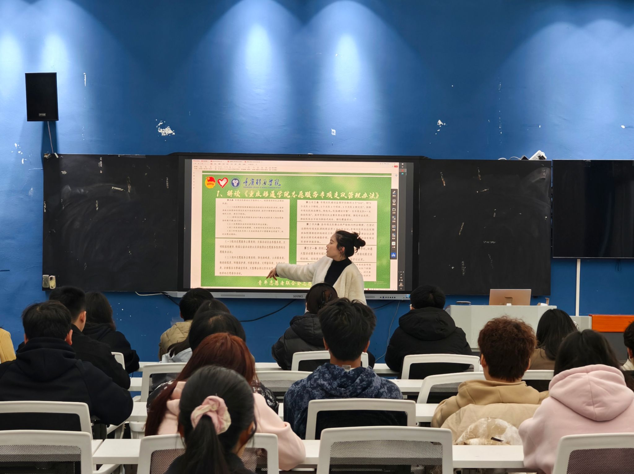 会议伊始,姜馨怡老师系统解读《重庆移通学院志愿服务专项支队管理办法》,通过明晰组织的规章制度、职责划分及运行机制,为志愿服务活动构建规范化管理体系,本次会议以“探讨+答疑”的形式进行,支队管理办法的系统性解答将确保本学期志愿服务工作有章可循、有据可依,为后续工作开展提供坚实保障。