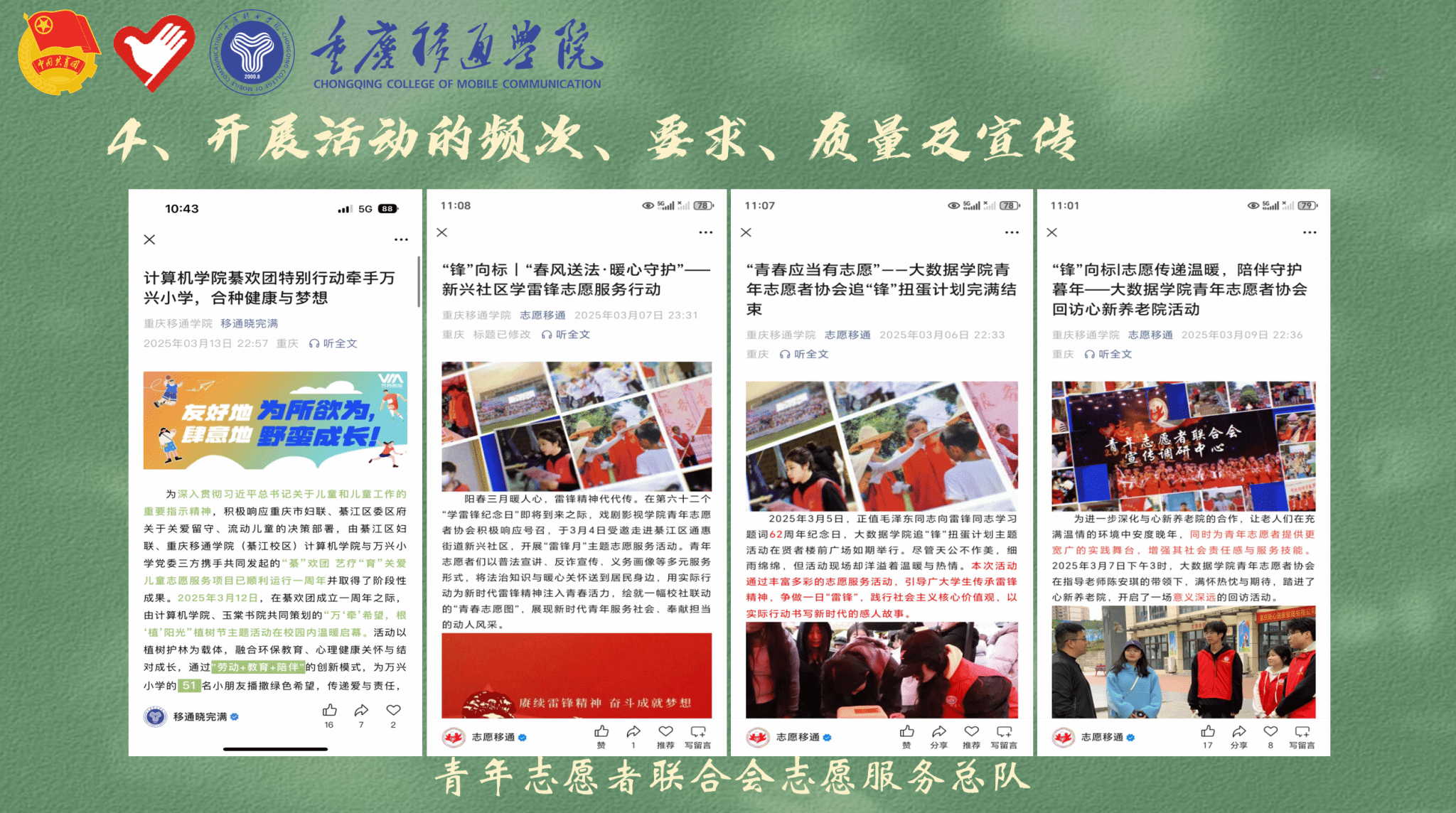 聚焦"一月一主题"移通学子在行动专项工作,会议着重强调近期重点任务的推进与落实,60+雷锋月系列活动的推进工作也成为本次会议的探讨重点,姜馨怡老师从“月月有活动”“活动质量推进”“活动后期推广”几方面进行后期工作重点部署,通过建立工作提醒机制,引导各支队关注关键时间节点与核心工作内容,有效避免工作疏漏,确保志愿服务项目有序推进,为全年工作规划奠定战略性基础。