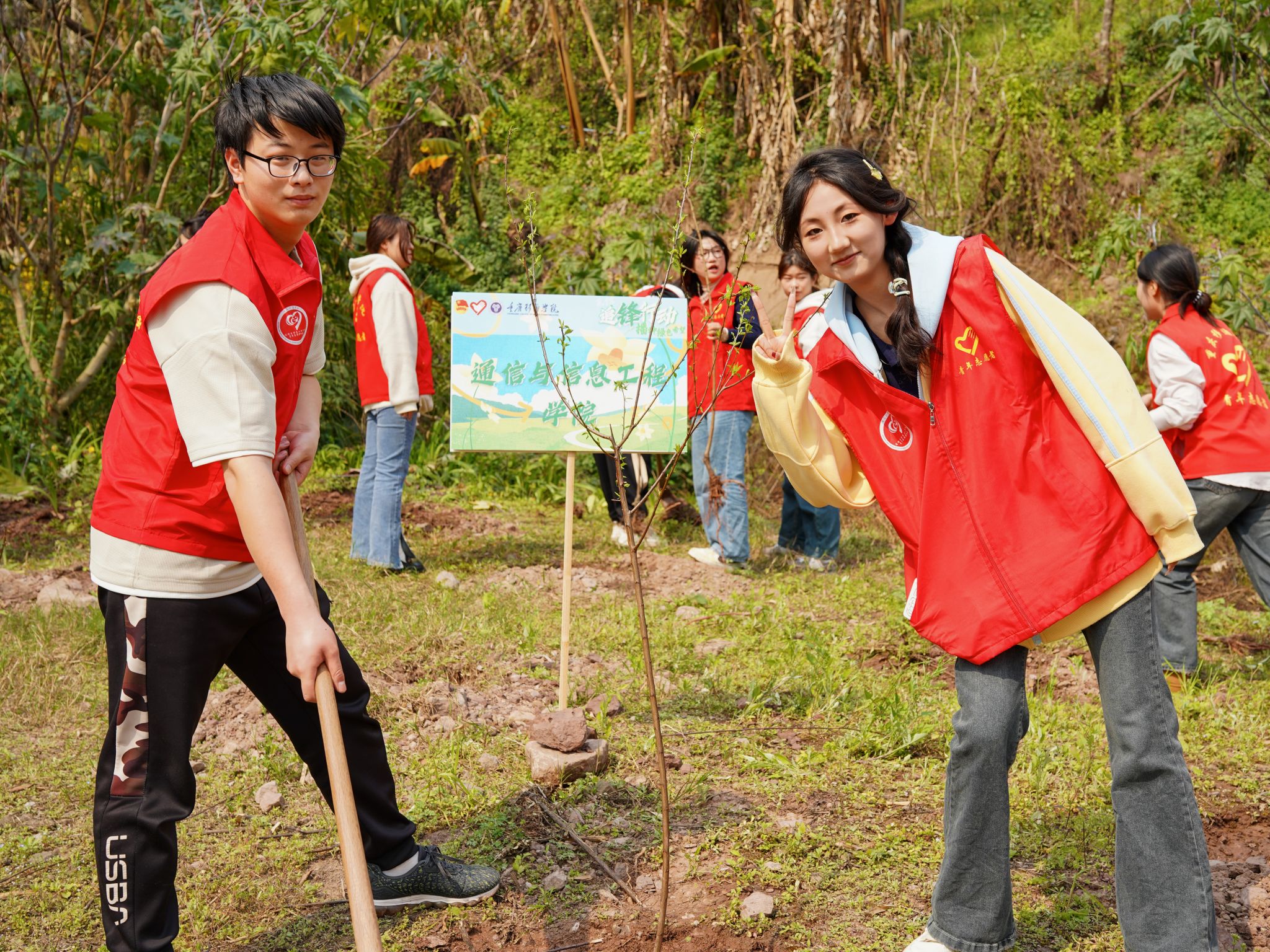 为深入践行生态文明理念,弘扬新时代雷锋精神,3月12日下午,重庆移通学院校团委联合基建后勤处、机关第二党支部、通信与信息工程学院共同开展“追‘锋’行动·播种绿色希望”3·12植树节主题志愿服务活动,共计60名教职工和志愿者代表在綦江校区二期排球场后山展开植树行动。经过两个多小时的努力,60株新栽种的树苗迎风挺立,为初春的校园增添盎然生机。此次活动将生态文明建设与雷锋精神传承深度融合,通过师生共植“成长林”,以身体力行的方式为青年学子树立榜样。让雷锋精神与绿色环保共同扎根于校园,为建设美丽校园培育更多新时代"追锋"青年。
