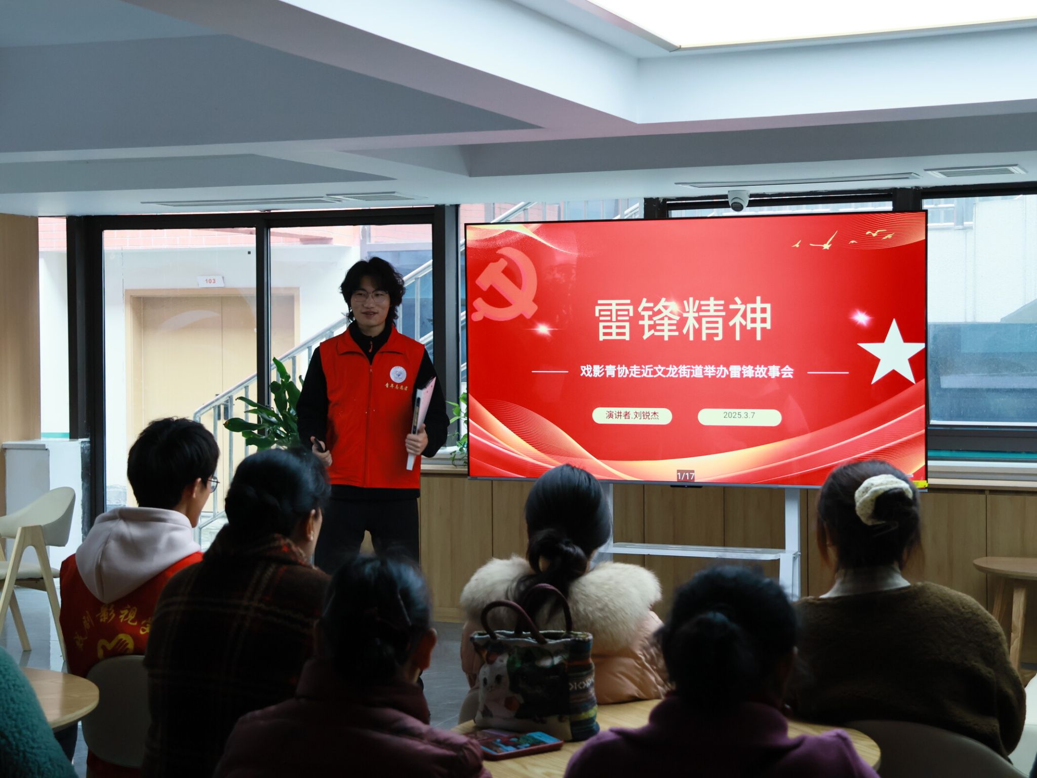 3月13日,戏剧影视学院青年志愿者协会走进文龙街道举办了“雷锋故事会”雷锋月主题活动,传承弘扬雷锋精神。活动开场,志愿者分组讲述“雷锋冒雨护送老人”事迹,通过老照片和历史影像辅助,让雷锋质朴坚毅的形象深入人心。主持人提问,居民踊跃举手回答,答对者获雷锋主题相关的纪念品。在“我身边的雷锋”分享环节,多位社区居民讲述身边无私助人的故事,拉近雷锋精神与生活的距离。活动尾声,全体人员共唱雷锋主题歌曲,加深了对雷锋精神的理解,为活动增添温馨和谐氛围,提高居民们参与志愿服务的热情。戏剧影视学院青年志愿者协会将继续秉持雷锋精神,用实际行动为构建和谐社会出力。