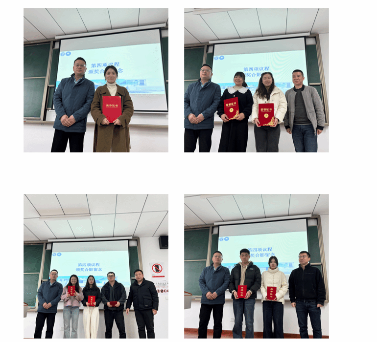 经综合评审,汪雨蝶凭借生动的互动设计与扎实的教学功底斩获一等奖,罗成、张旭获二等奖,赵江芙、薛润、龚雪获三等奖,邓宇浩、马芸萍获优秀奖。颁奖环节由蔡宇教授、黄兴教授、徐多礼工程师及吕云山副院长依次为获奖教师颁发证书。