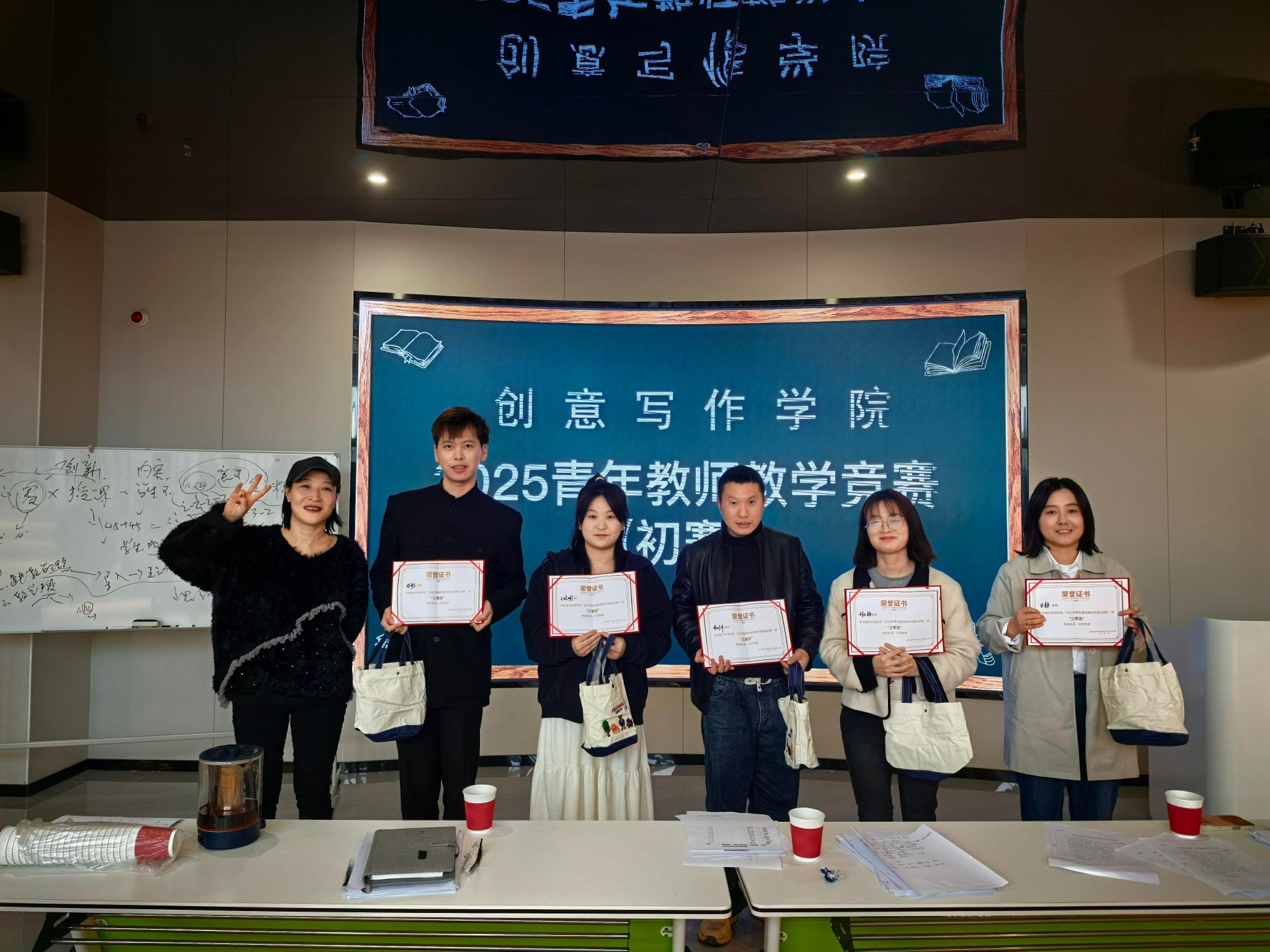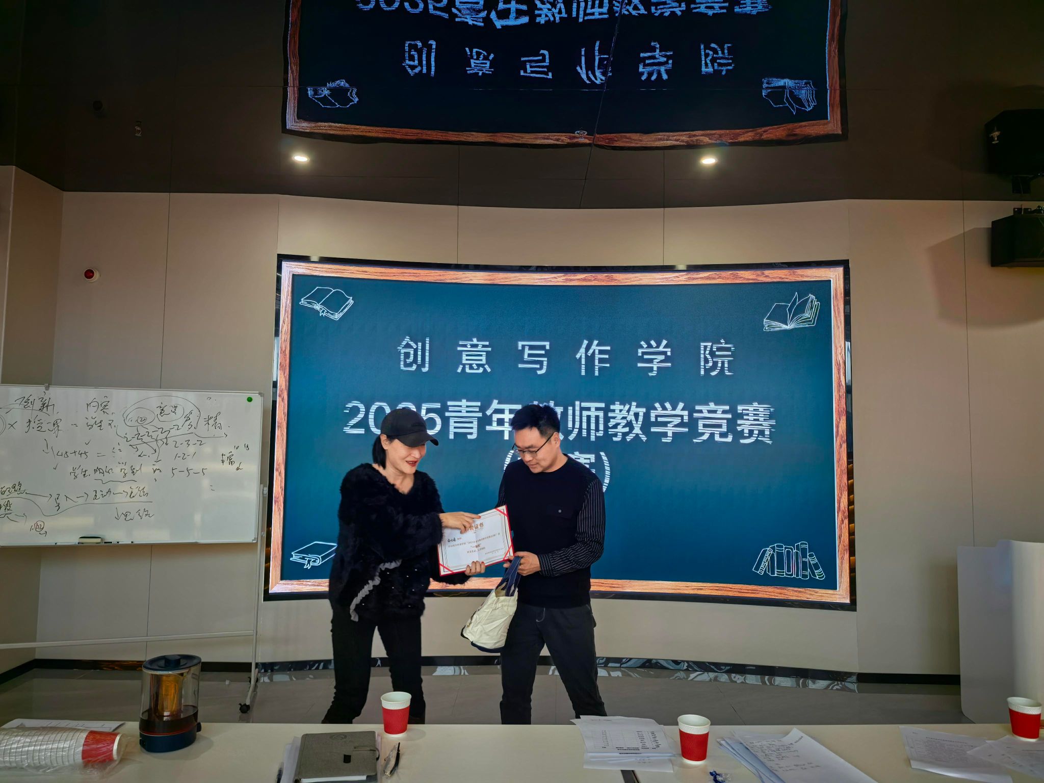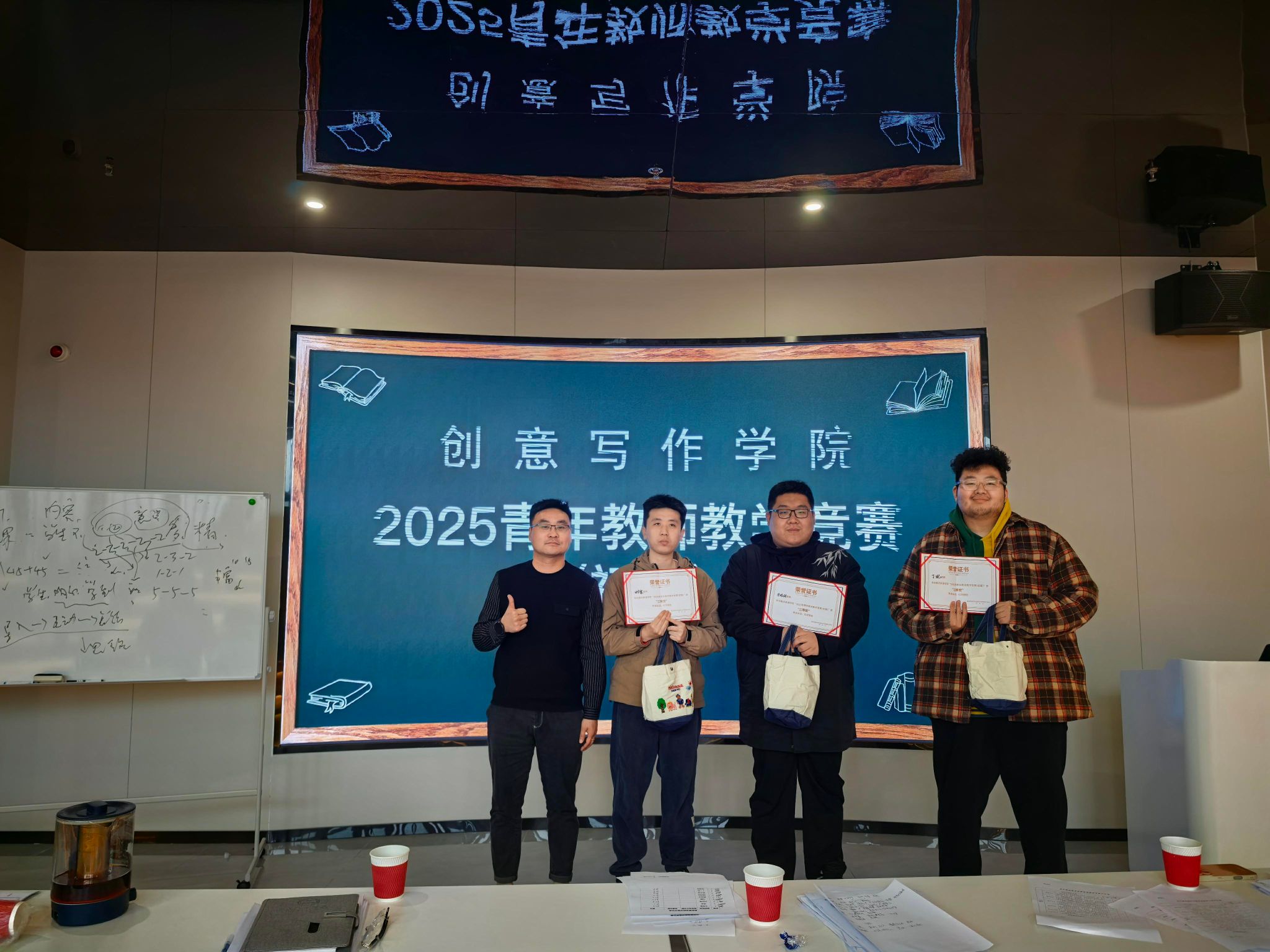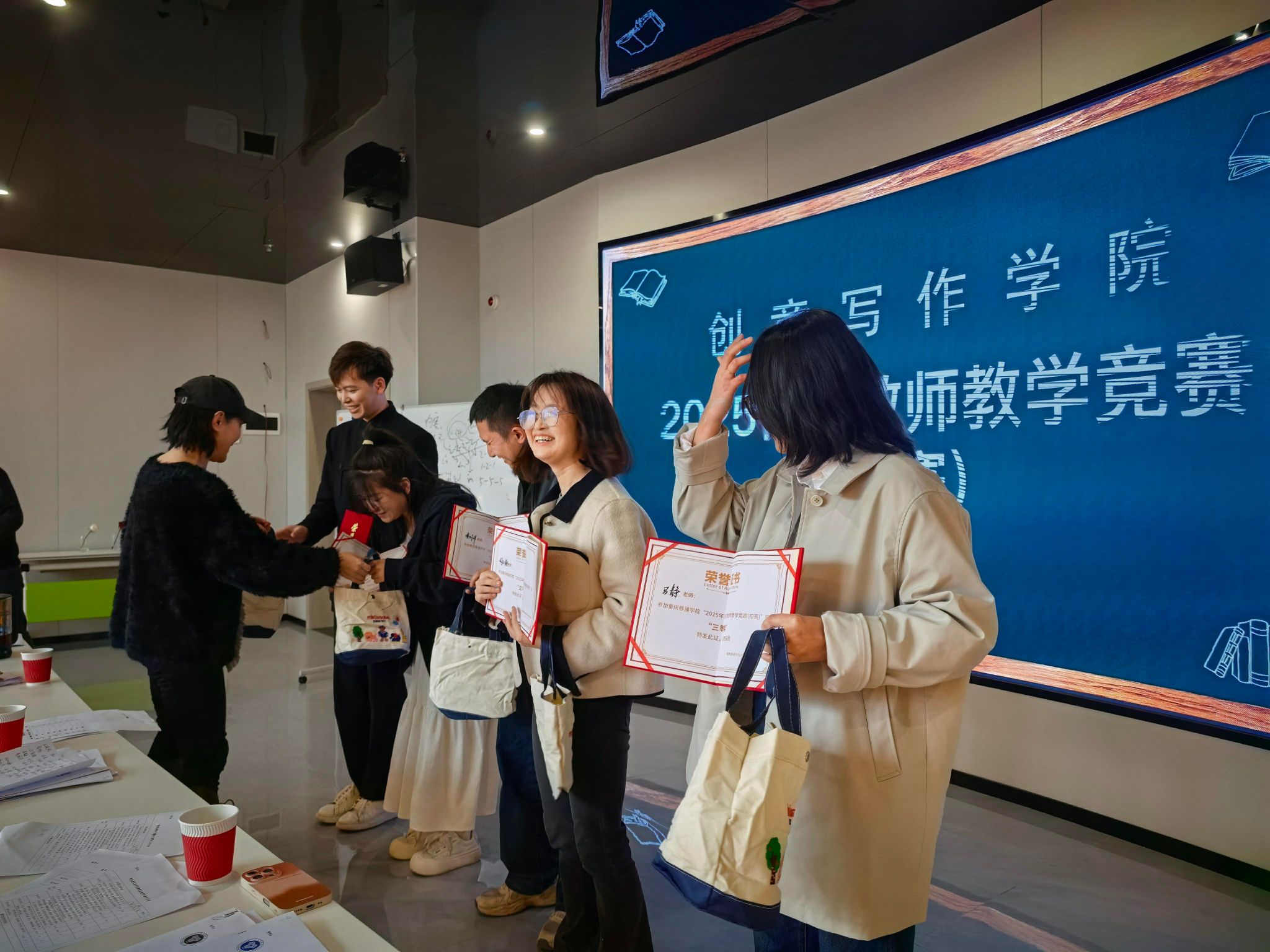 经过激烈角逐,本次竞赛评选出一等奖一名,二等奖三名,三等奖五名。最终,杨文浩老师凭借出色的教学表现荣获一等奖,徐瑞皓、田宗霖和丁一钒老师获得二等奖,马静、黄明洋、王晓煊、周彬和胡双梅老师获得三等奖。本次青年教师教学竞赛不仅为青年教师们提供了一个展示自我的平台,也促进了教学理念的交流与创新。参赛教师们在竞赛中不断提升教学能力,观摩教师们亦从中汲取教学灵感,共同推动创意写作学院教学质量的持续提升。