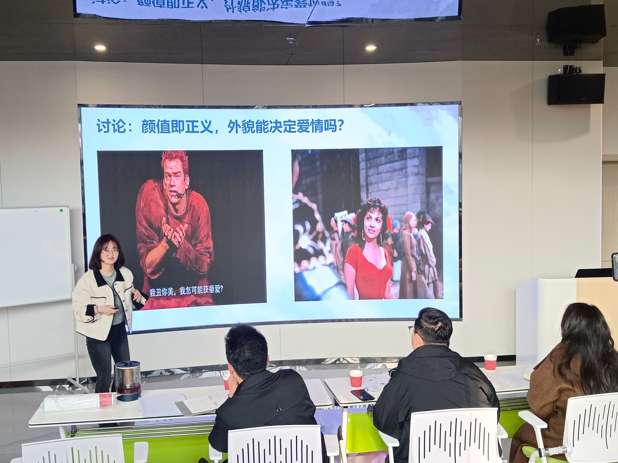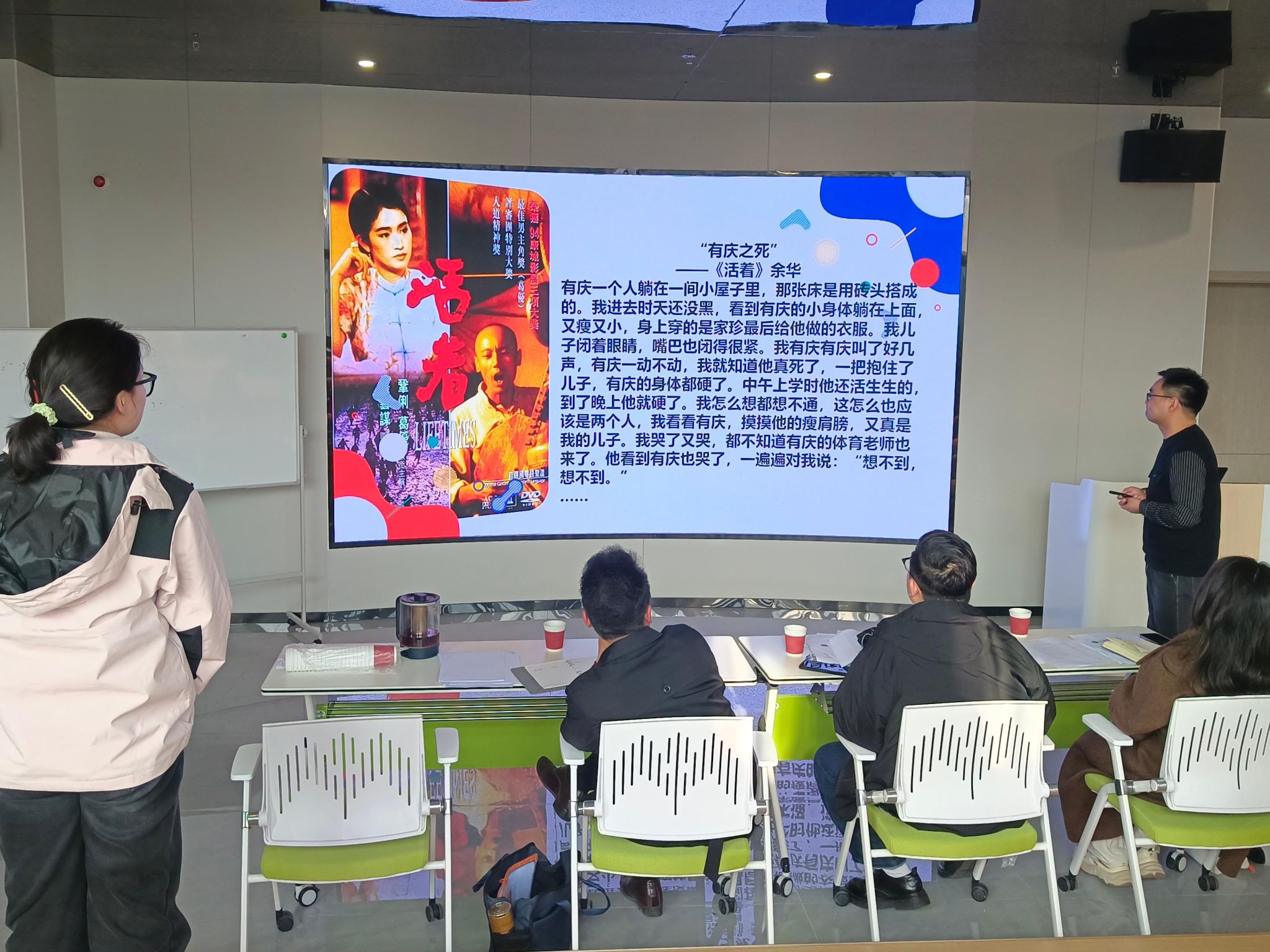杨文浩老师在《写作工坊・戏剧》课中带来了带来了别开生面的《看见 “心碎” 的声音》。他创新性运用文本可视化策略,将经典作品《活着》里 “有庆之死” 的文本与电影对比,让学生直观感受不同艺术形式的呈现差异。还引入电视剧《风中的火焰》“丧妻” 片段,深入解析角色情绪的递进与视觉化表达。同时,借助音乐渲染气氛,进一步深化学生对 “痛苦” 情绪的感知。这种多维度的教学方式,使学生能更好地理解戏剧创作中如何刻画人物情绪,提升戏剧写作能力。