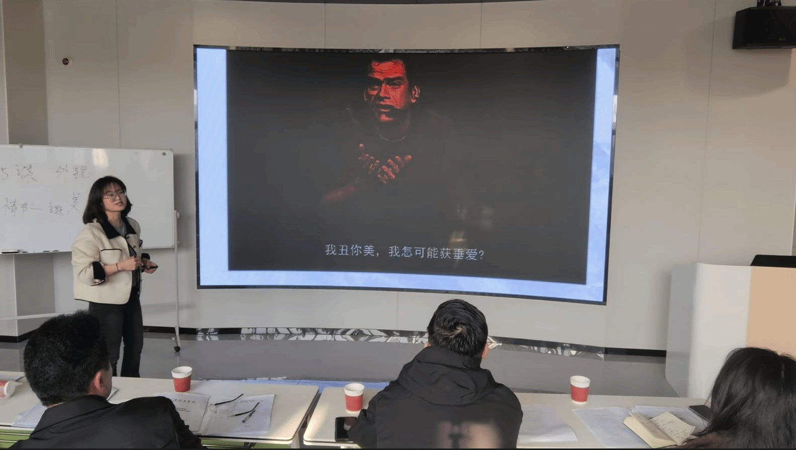 胡双梅老师在《创意写作》“外貌” 章节中主题课程中,巧妙借助学生改编的《灰姑娘》人物形象,点燃了关于美与丑的讨论热情。课堂上,胡老师进一步引入 AI 生成图像技术,展示不同风格的图像,让学生直观感受外貌呈现的多样性。这不仅激发了学生的创作灵感,更引导他们深度思考 “美” 与 “丑” 的本质,以及 “颜值即正义” 这一流行观点的合理性。在这场思维碰撞中,学生们对人物外貌刻画有了新的认知,也提升了对美学和价值观的理解。
