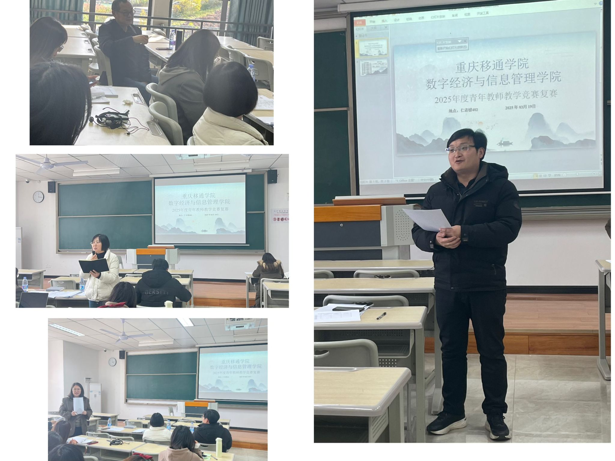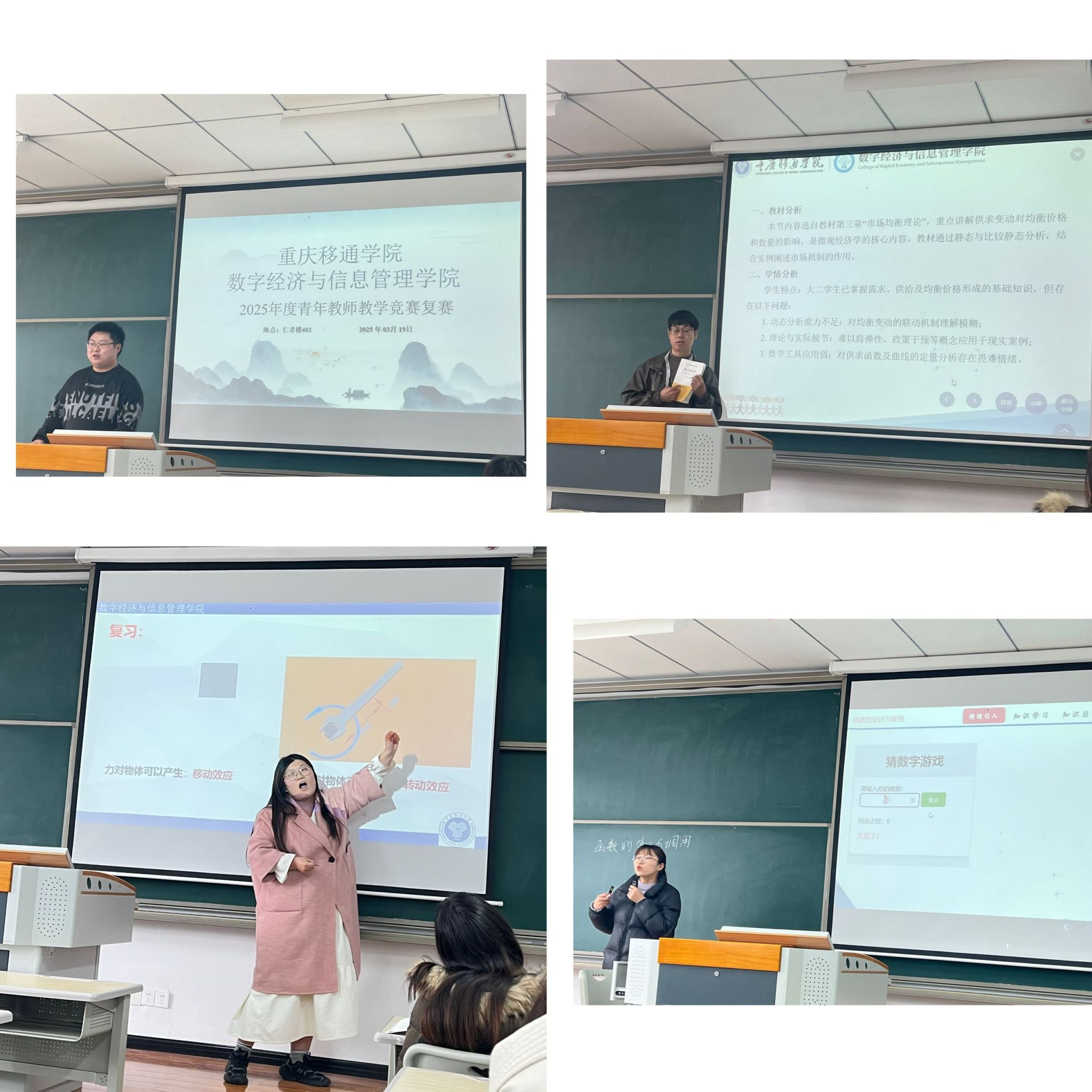为进一步提升青年教师的教学能力和创新水平,推动教学方法的改革与创新,数字经济与信息管理学院于2025年3月19日下午举办了年度青年教师教学竞赛学院复赛。本次竞赛在仁者楼402教室举行,共有九位青年教师参与,展现了他们在教学领域的卓越风采。