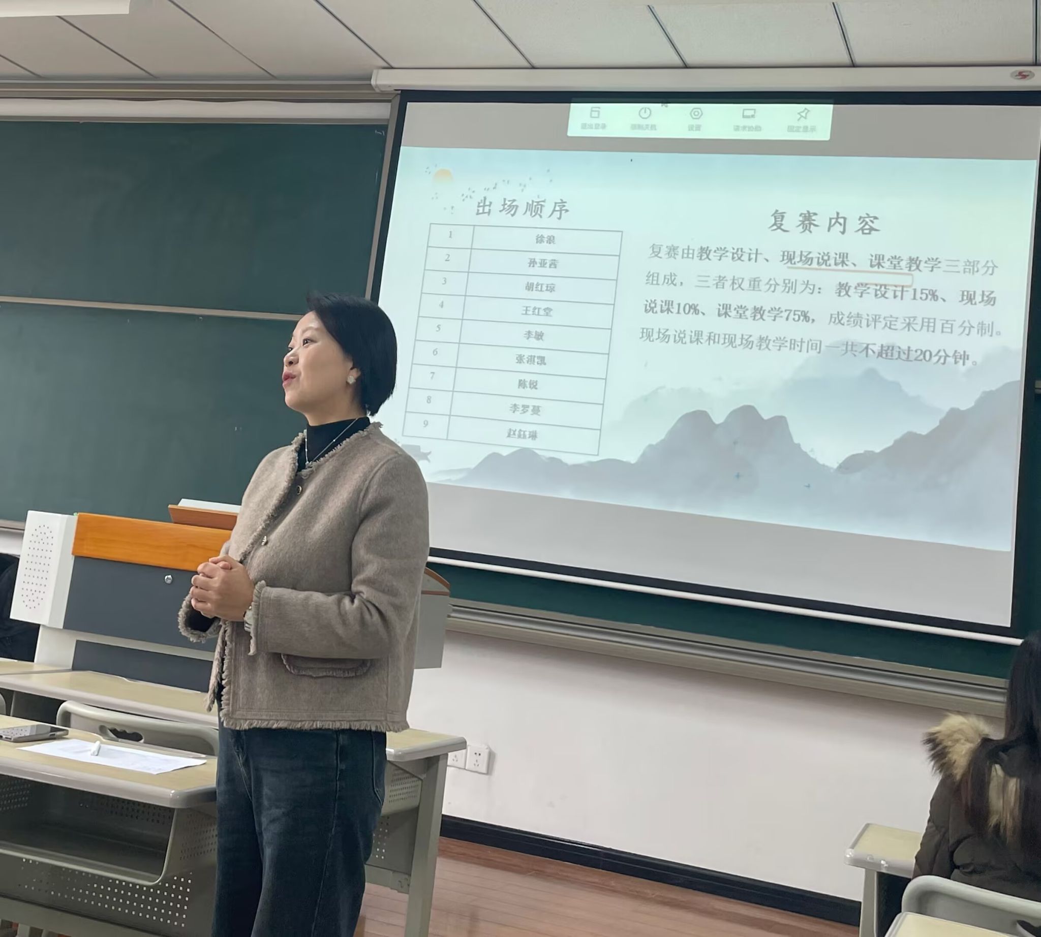 在赛后总结性发言中,王哲副院长着重强调了此次竞赛的重要意义。他指出,这不仅是一个展示教师教学风采的平台,更是一个促进教师成长与进步的宝贵契机。刘贵容院长鼓励教师们积极互相学习借鉴,汲取他人之长,补己之短。同时,她建议教师们广泛汲取优秀经验,深入思考教学方法与策略,明确教学重点,精心打磨教学内容,不断优化教学过程。通过这些努力,切实提升教学质量,为学生的未来发展奠定坚实基础,助力学生成长为优秀的专业人才。