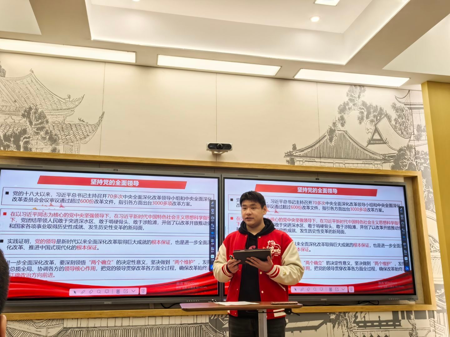 会议伊始,青年党员王泓锦带领全体同志集中学习《党的二十届三中全会》精神。通过深入解读全会文件,全体党员深刻领会新时代党的建设总要求,并结合实际工作实际展开讨论。以理论指导实践,为支部建设和学校发展注入新动能。学习过程中,党员们积极交流心得,进一步夯实了思想根基。
