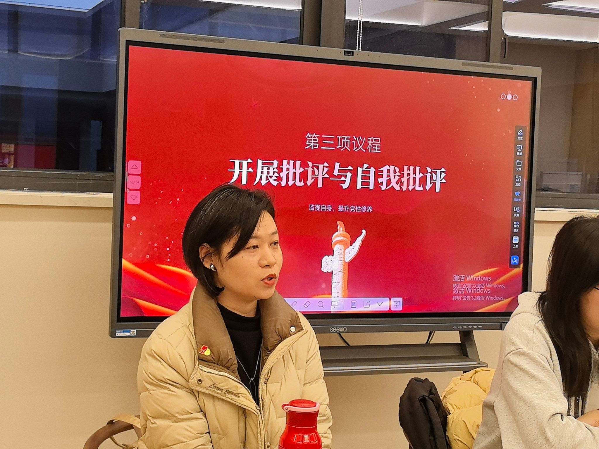 本次组织生活会既是一次思想的“大扫除”,更是一场行动的“再动员”。张艳书记要求全体党员以问题整改为契机,做到“三个结合”:理论学习与课程思政结合、组织生活与创新实践结合、服务师生与自我提升结合。下一步,党支部将制定整改清单,定期跟踪问效,以实干实绩为学校高质量发展和新时代党的建设贡献智慧与力量。