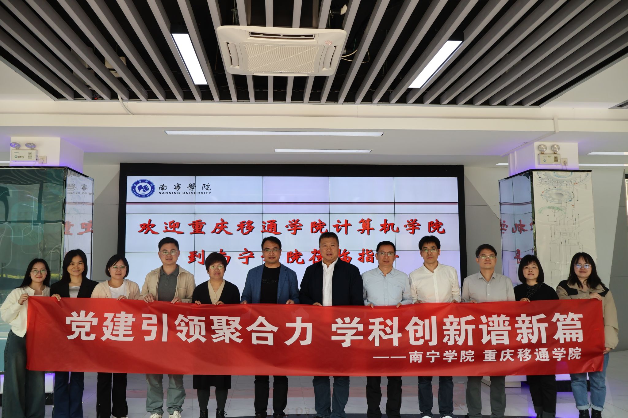 次日,活动聚焦学科发展与党建协同,赴南宁学院人工智能与软件学院、广西财经学院大数据与人工智能学院开展交流。围绕“党建+团建”“制度完善”“学生思想教育”等议题,两校教师深入探讨党建引领下的教学管理创新。南宁学院“校企协同育人”模式,启发了教师党员在服务区域数字经济中的使命担当;广西财经学院以“党团共建”推动学生创新创业的案例,则为大数据与计算机学科融入实践育人提供了新思路。交流中,党员们一致认为,必须将党的二十大精神与“两会”精神融入课堂教学,以“双师双能”队伍建设为抓手,推动学科交叉创新,为“双高计划”建设和区域产业升级注入活力。
