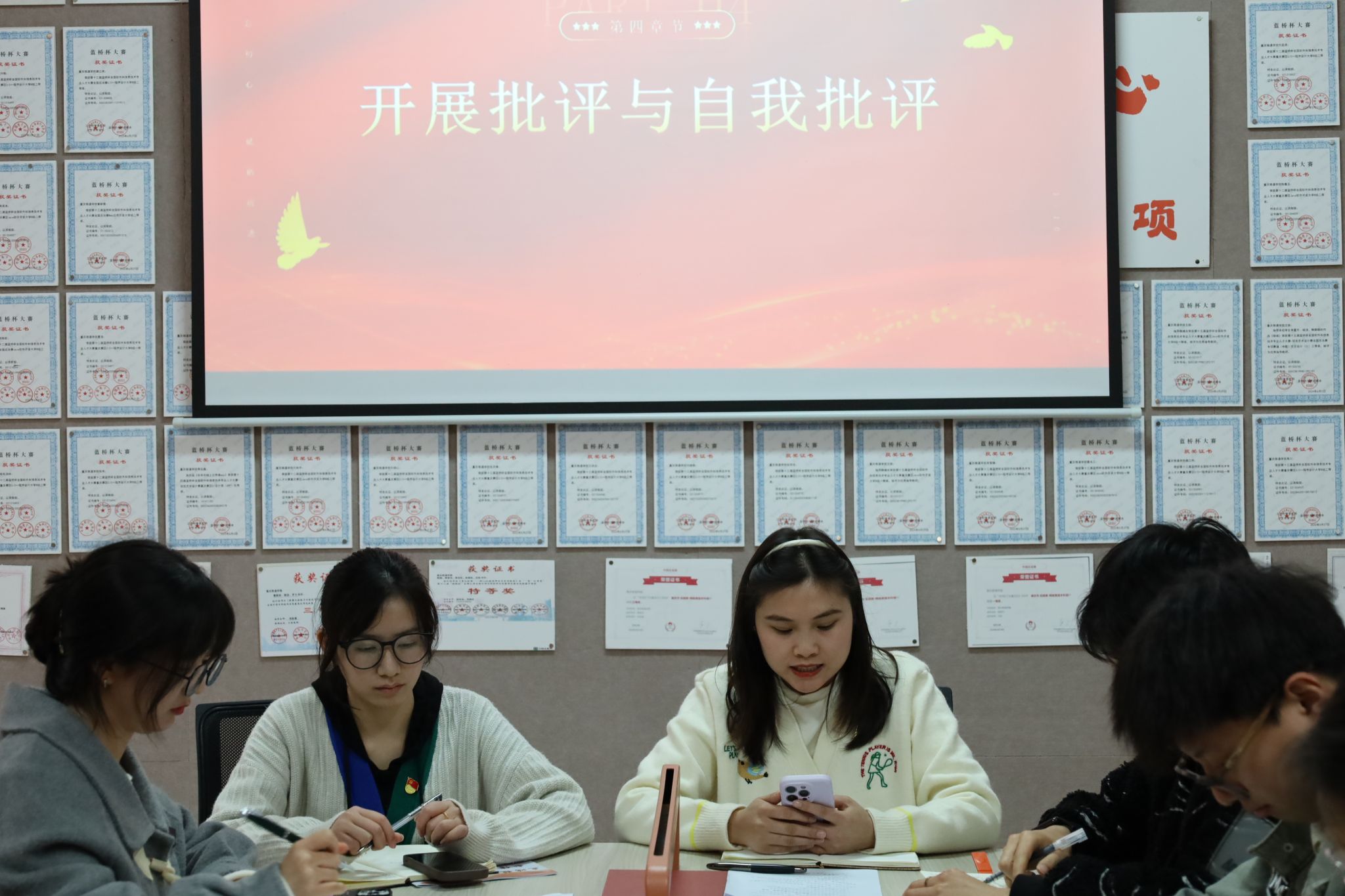 会上,党支部书记和支部委员等党支部班子成员带头开展批评与自我批评,支部全体成员认真对标党规党章及系列讲话精神,深刻反思自身存在的问题与不足,从多个方面进行自我批评,并进行党员互议互评。针对理论知识学习不足、工作方式方法不够灵活、学生管理工作不够细致、模范带头作用不够突出等方面,与会党员都进行了深度剖析与内省。另外,党员同志们诚恳地指出其他同志存在的不足,并提出合理的改进建议,真正达到了深化基层党支部凝聚力、团结力,促进支部工作增能提效的目的。戏剧影视学院学生党支部全体党员结合日常表现与学习感悟,直面自身缺点与不足,明确改进方向,营造了严肃认真的学习氛围与政治底色。
