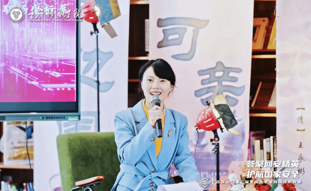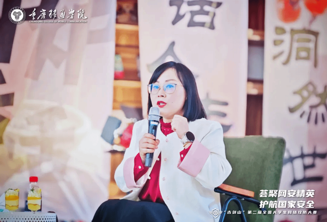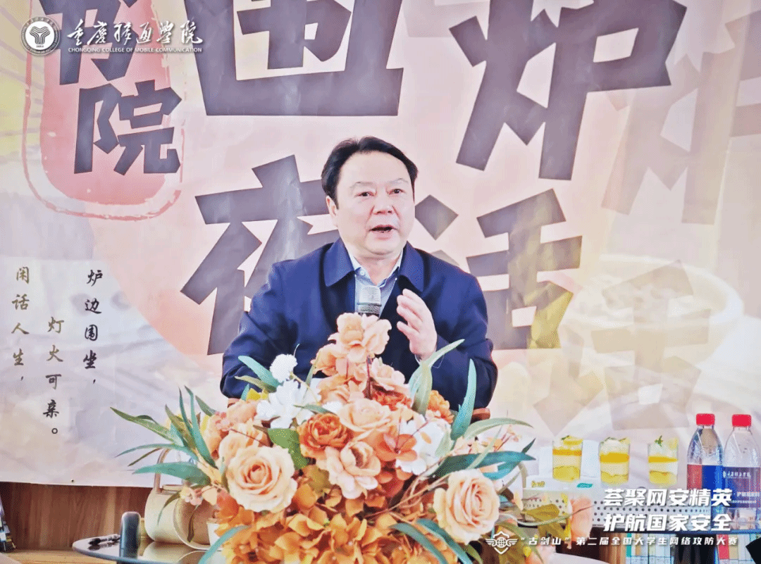 随后,母明江主任针对陈玉玲教授分享表示享受奋斗是一种状态,这种状态即是过程,也是结果,结果和过程在很大程度上具有互通性,给予在场师生启发。他指出重庆移通学院举办的“古剑山”全国大学生网络攻防大赛这个品牌赛事活动,凝聚了学校领导和老师们的心血,提升了学校影响力,同时为在校的大学生搭建了与大咖、知名专家对话交流的平台,契合綦江区关怀下一代青少年成长的初心。