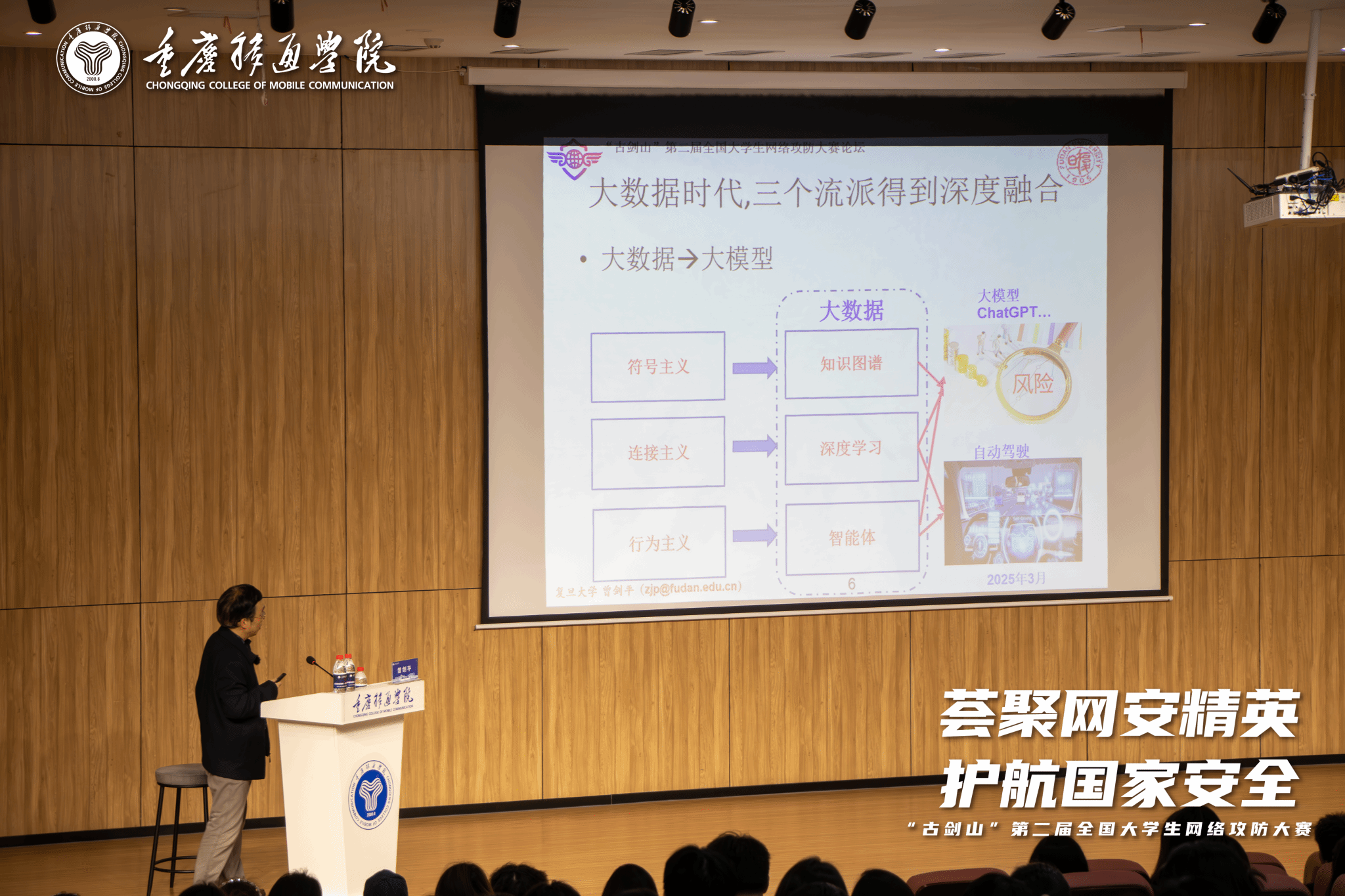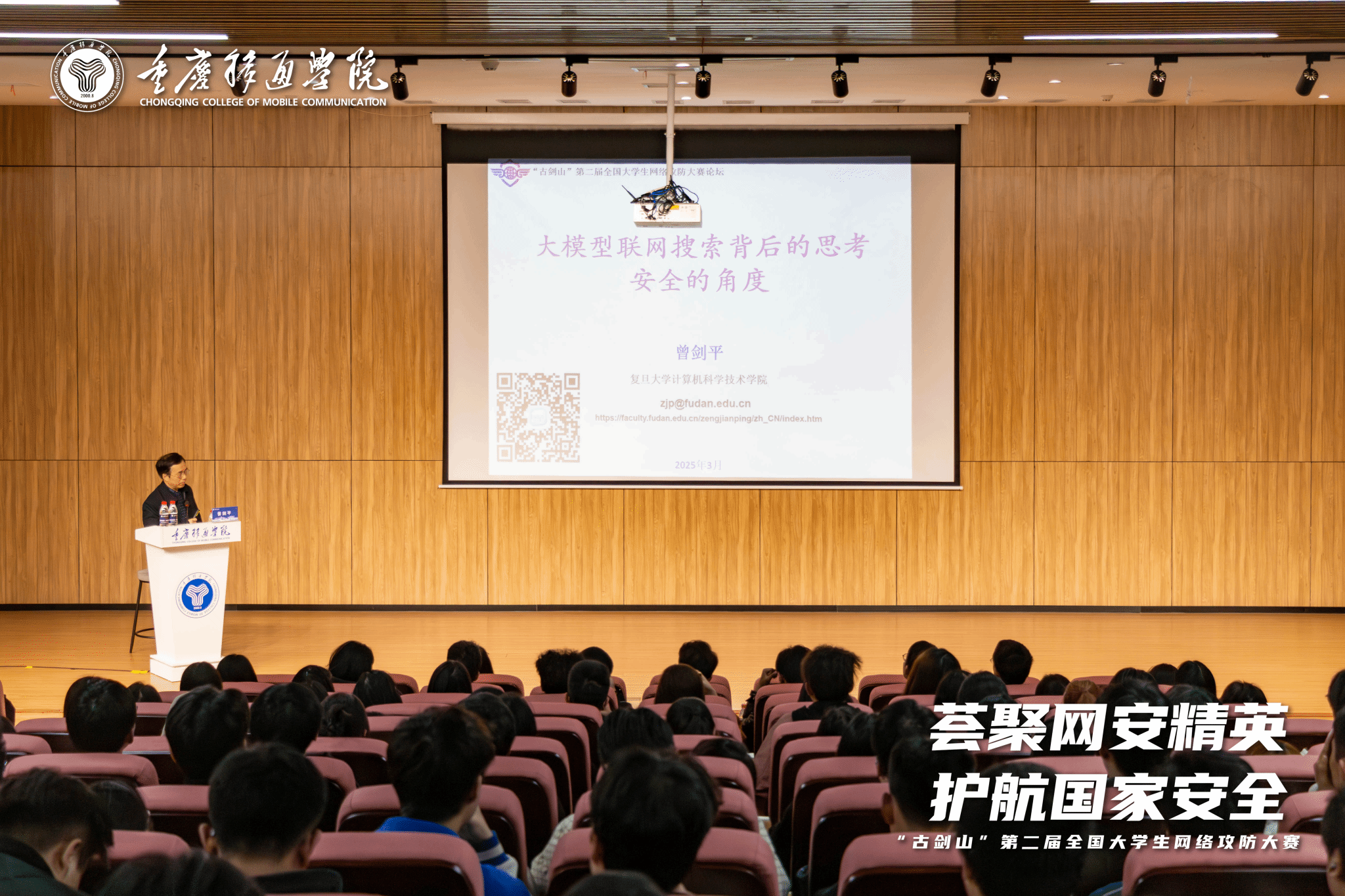 3月28日,由重庆移通学院主办的“古剑山”第二届全国大学生网络攻防大赛名家大讲坛第三场,于重庆移通学院綦江校区贤者楼131顺利举行。特邀复旦大学副教授曾剑平开展主题为《大模型联网搜索背后的思考:安全的角度》的讲座,深入探讨了大模型在联网搜索过程中面临的安全挑战与应对策略。此次活动由名师课堂李富强老师主持,信息安全学院代理教学副院长周小艳及众多学院师生共同出席讲座。