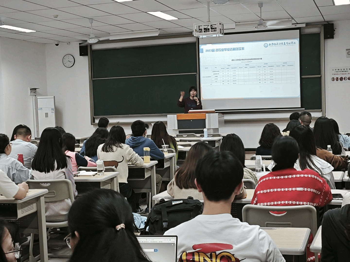 会上,学工副院长任瑞娟首先介绍了学院就业工作的组织架构及责任分工,形成全员参与、全程指导的就业服务体系。随后,她梳理了学院近三年毕业生的就业落实情况,详细分析了当前升学、留学及就业率数据。目前毕业生高质量毕业去向总体呈现逐年逐届递增态势,期待2025届毕业生的将高质量毕业去向提升一个高度。同时指出受经济形势影响,部分专业存在“慢就业”“缓就业”现象,面对此类问题仍需进一步关注重点群体,精准施策,确保毕业生高质量就业。