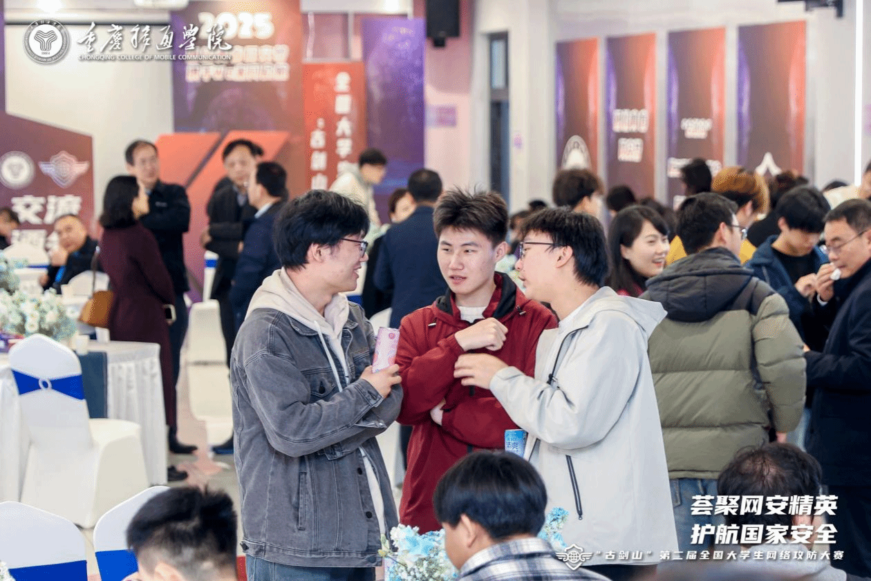 2025年3月29日下午,由中共重庆市委网络安全和信息化委员会办公室、重庆市数据安全工作协调机制、重庆市教育委员会、中国共产主义青年团重庆市委员会、重庆市綦江区人民政府作为指导单位,重庆移通学院主办,奇安信科技集团有限公司提供技术支持的“古剑山”第二届全国大学生网络攻防大赛决赛成功举办。为给参赛选手营造一个轻松愉快的交流氛围,加强选手、嘉宾之间的互动与联系,大赛组委会在丁山书院举办了以“硬核青春网安梦,携手We来同启航”为主题的交流酒会活动。来自全国各地的参赛师生、嘉宾以及各位领导齐聚一堂,共同分享网络安全领域的实践经验、前沿见解,探讨行业发展新趋势。