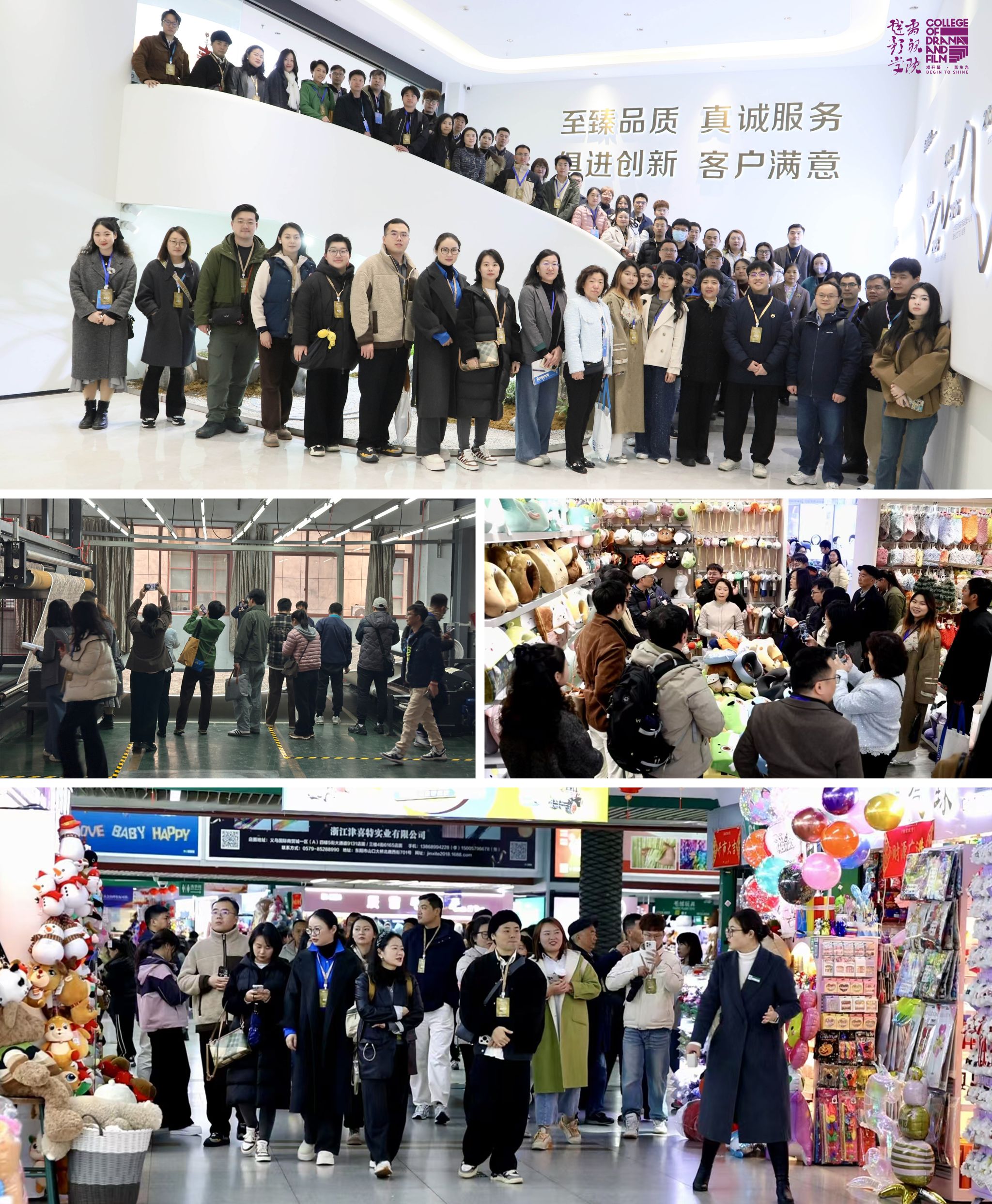 作为全球最大的小商品集散中心,义乌拥有7.5万商位、210万种商品,日均客流量超21万人次,商品辐射230余个国家和地区。近年来,义乌通过“设计驱动转型”,年孵化新品超5000款,设计赋能产品溢价达30%-200%,2024年跨境电商交易额突破2000亿元。这一庞大的产业生态为戏剧影视学院的设计教育提供了丰富的案例情景和教改场域。首日,戏剧影视学院副院长王芳、动画专业建设负责人李如冰与参会教师一同走进义乌国际商贸城,实地考察商品设计、生产流程与市场逻辑,并与商家就设计痛点、消费趋势展开深入交流。