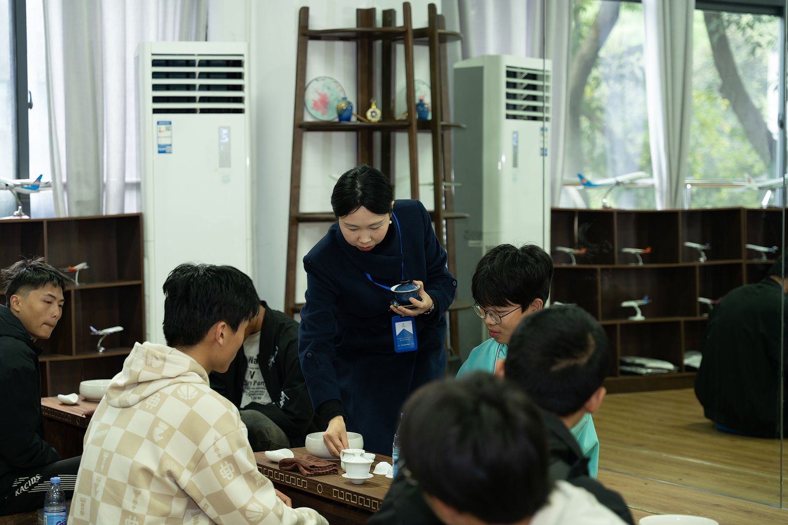 会后,对学生感兴趣的新媒体直播实训基地、航空实训基地等做了重点介绍,部分学生代表参与体验了客舱服务、安检实操、茶艺以及直播体验。